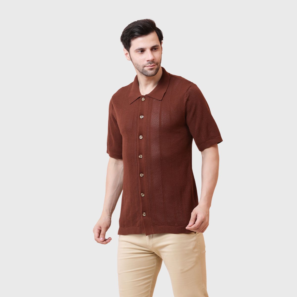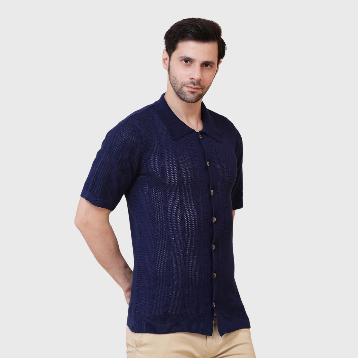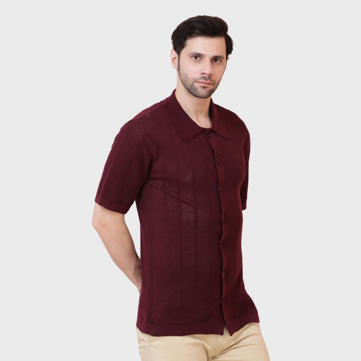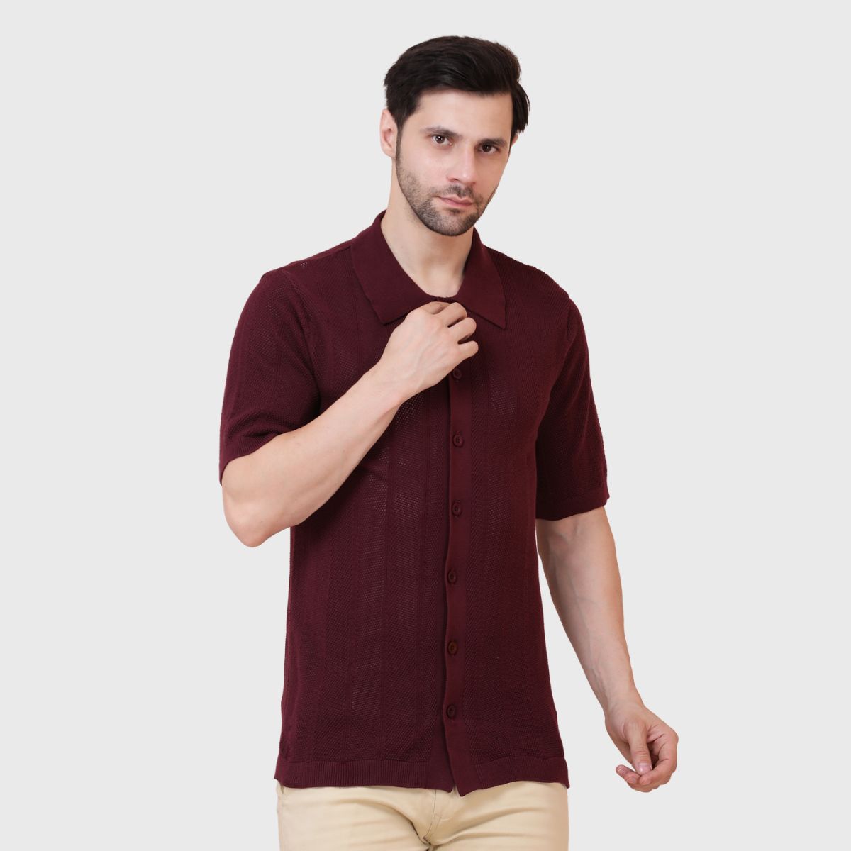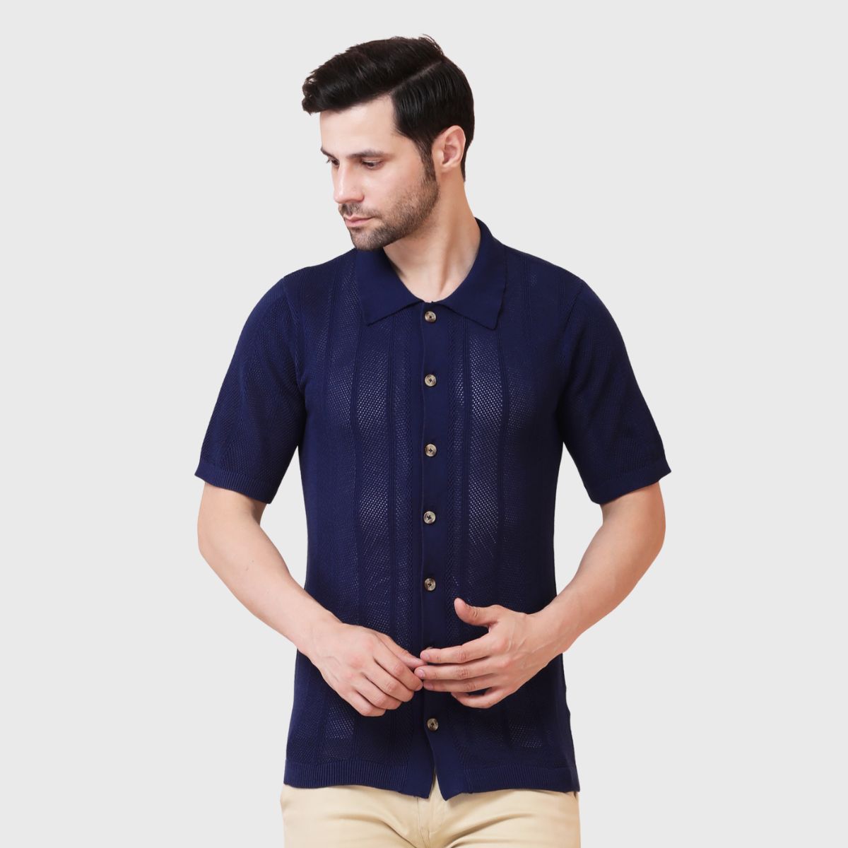 NOQUO presents a stylish black button-down polo shirt for men with a unique textured knit design. Made from a breathable cotton blend, this short-sleeve shirt is ideal for everyday casual and smart-casual dressing. Perfect for summer wear and easy to maintain.