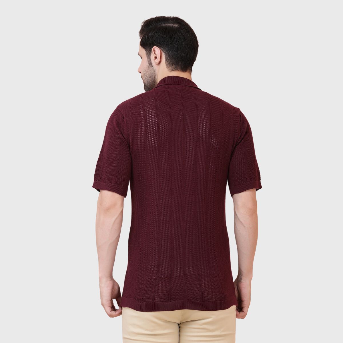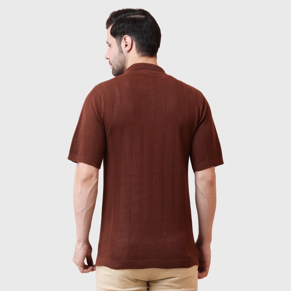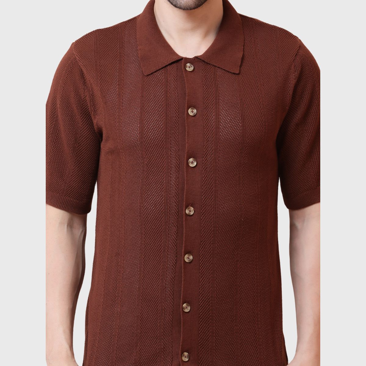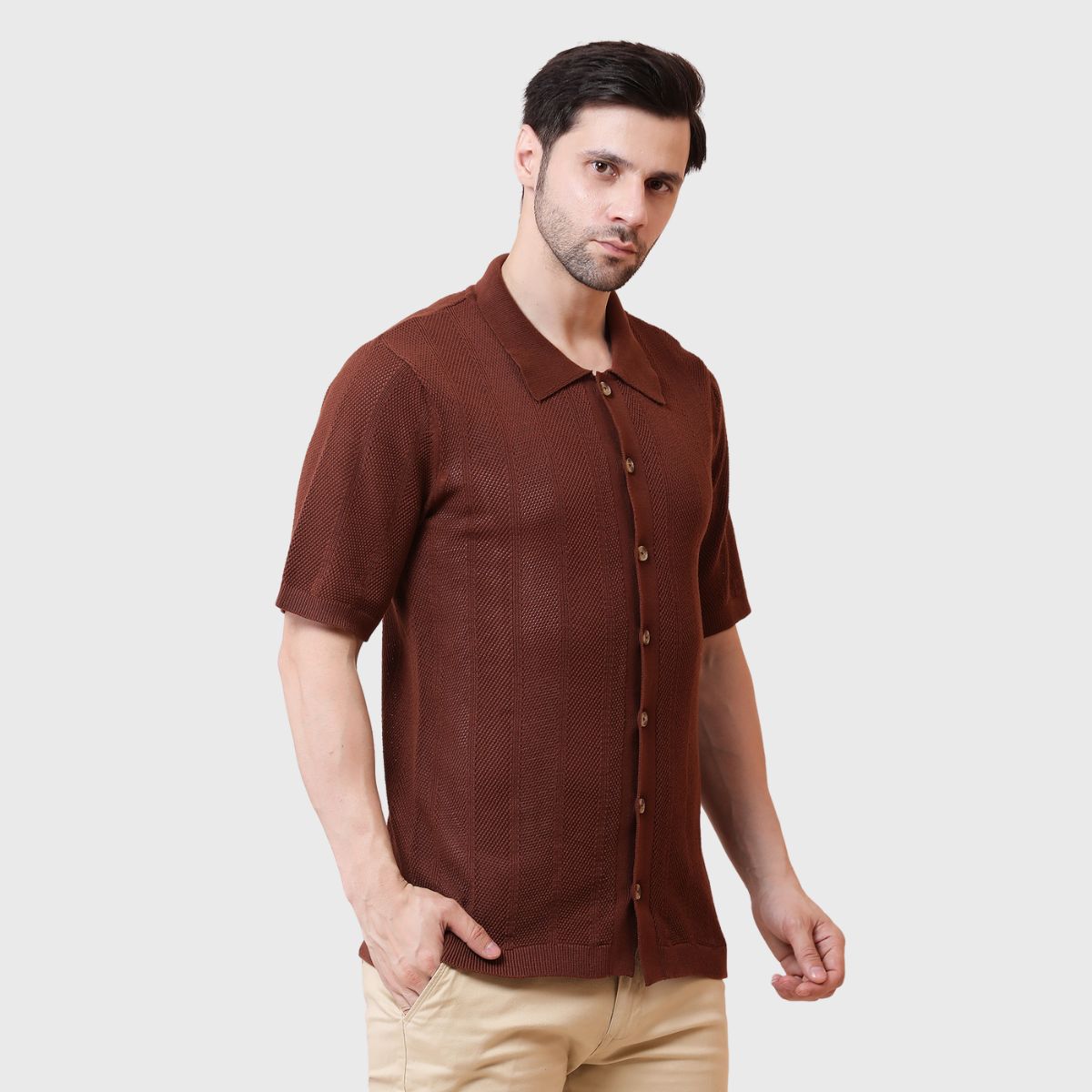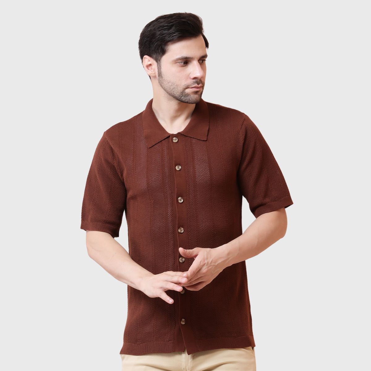 NOQUO presents a stylish black button-down polo shirt for men with a unique textured knit design. Made from a breathable cotton blend, this short-sleeve shirt is ideal for everyday casual and smart-casual dressing. Perfect for summer wear and easy to maintain.