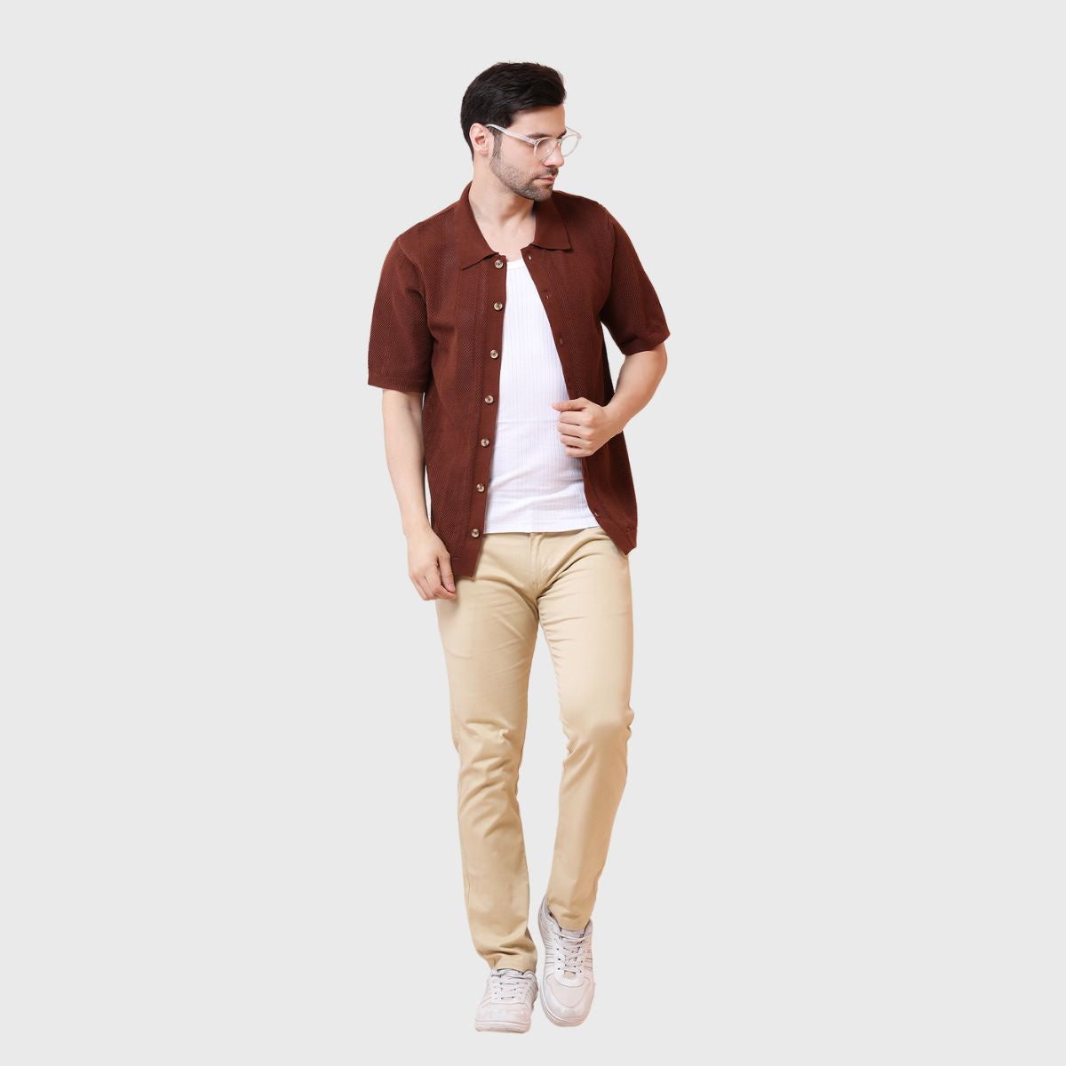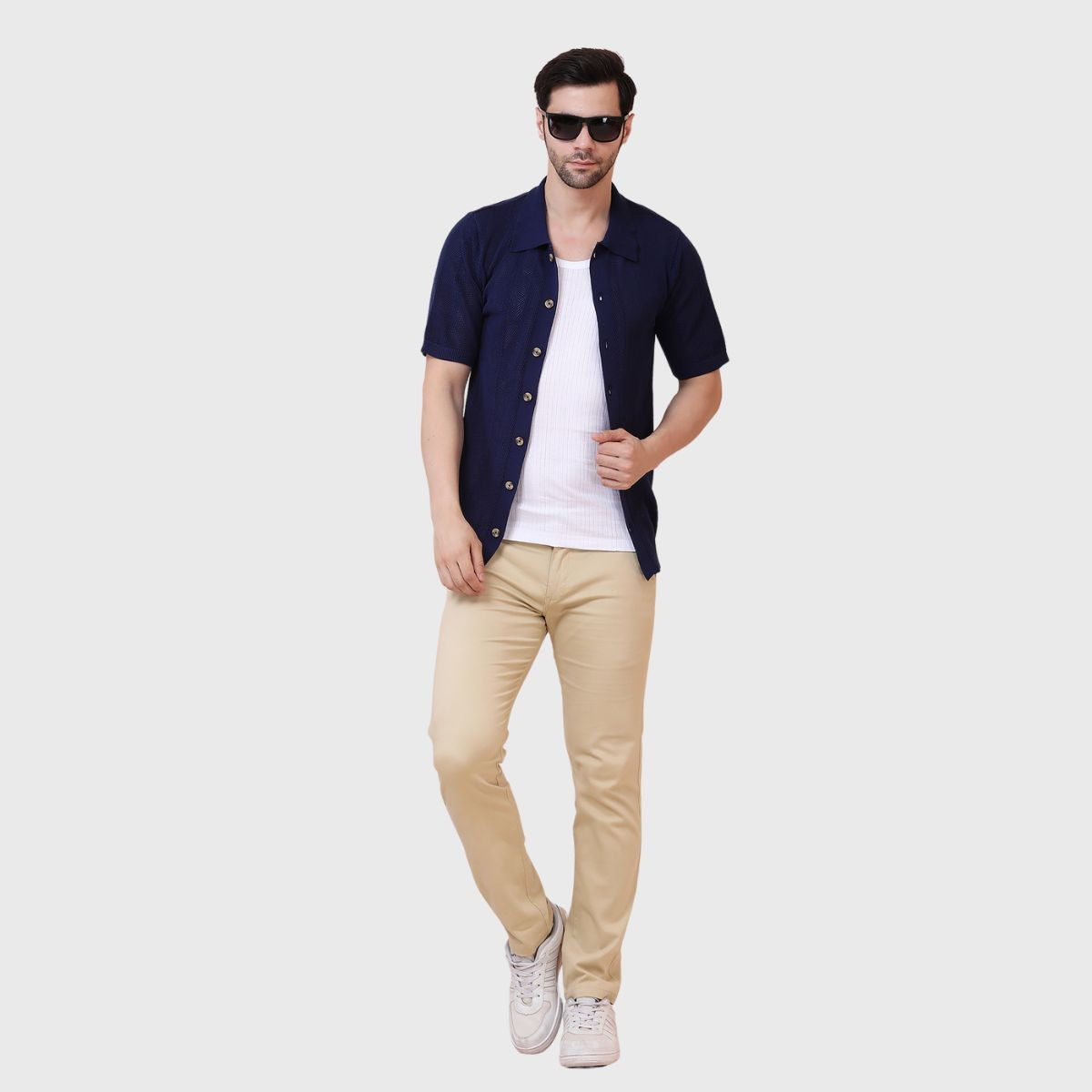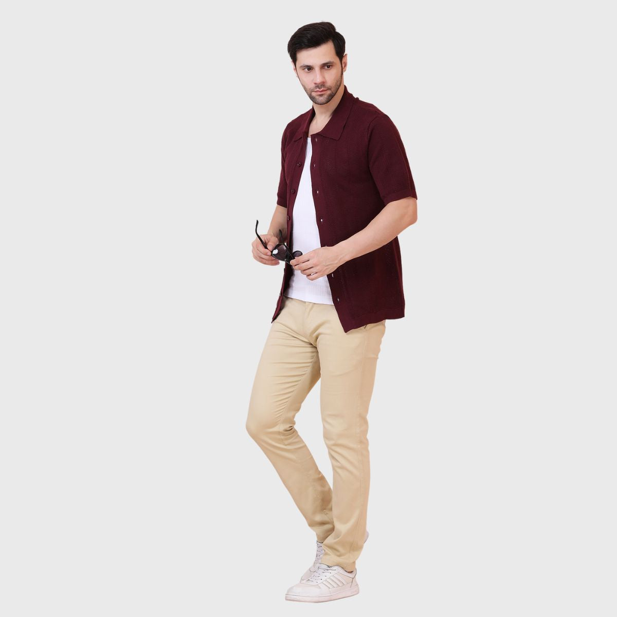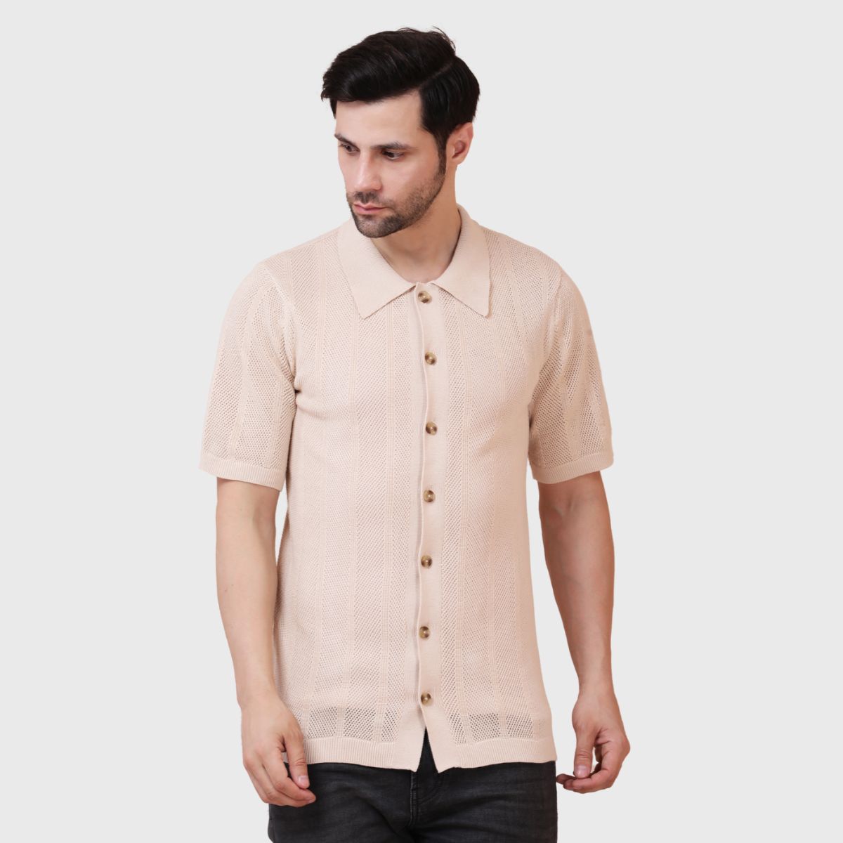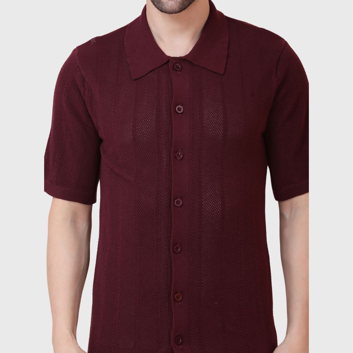 NOQUO presents a stylish black button-down polo shirt for men with a unique textured knit design. Made from a breathable cotton blend, this short-sleeve shirt is ideal for everyday casual and smart-casual dressing. Perfect for summer wear and easy to maintain.