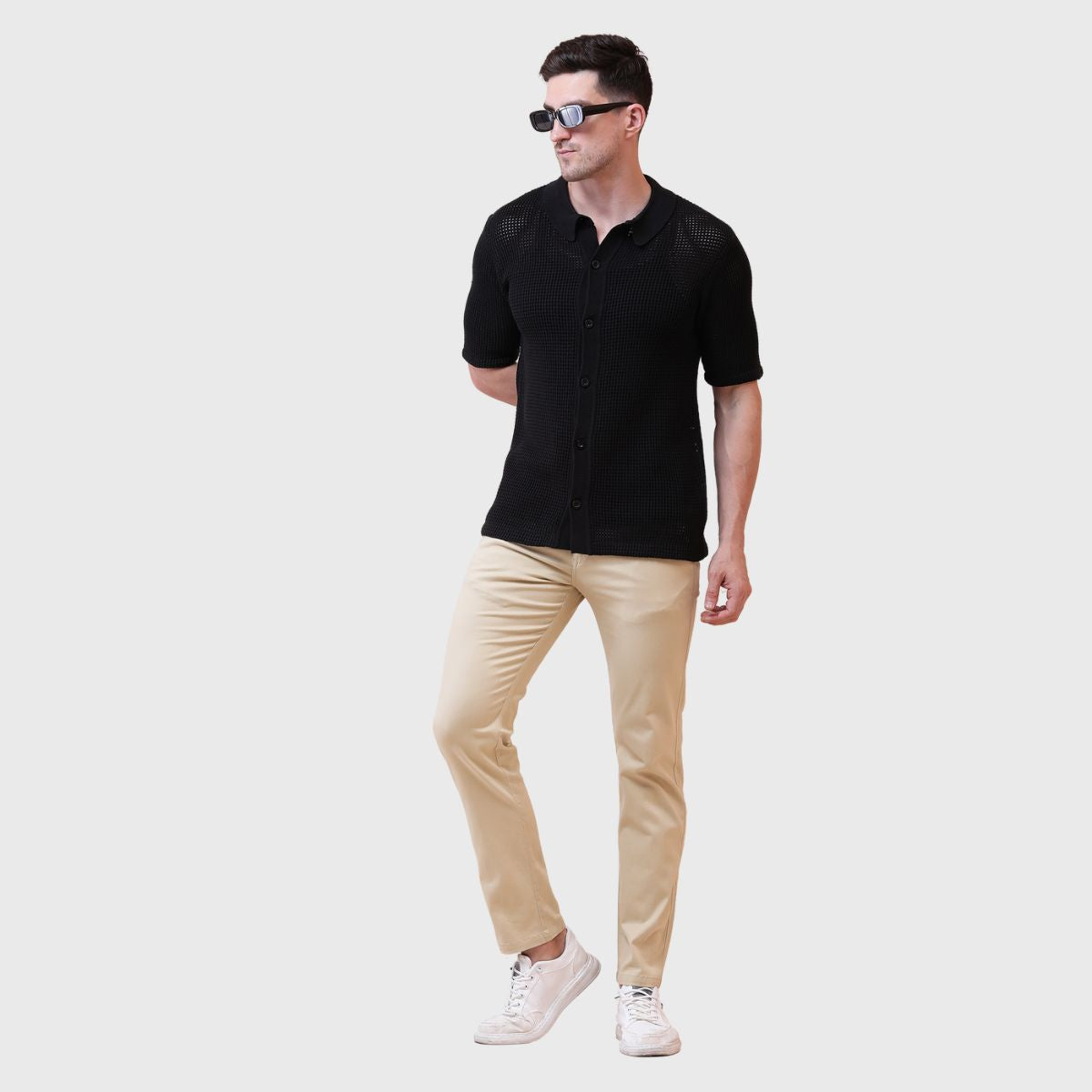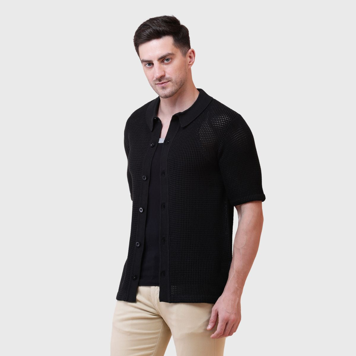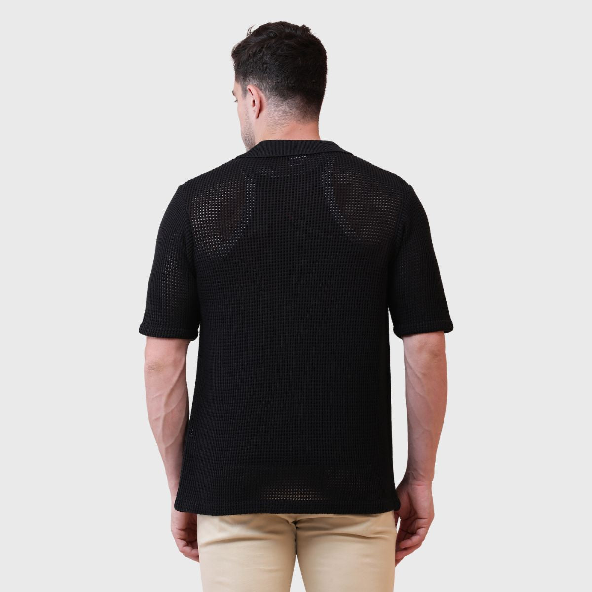 NOQUO presents this stylish black knitted shirt for men, crafted with breathable fabric and a sleek button-down design. Ideal for casual and semi-formal occasions, it offers a smart fit, superior comfort, and versatile pairing for all seasons. A wardrobe must-have for every man.