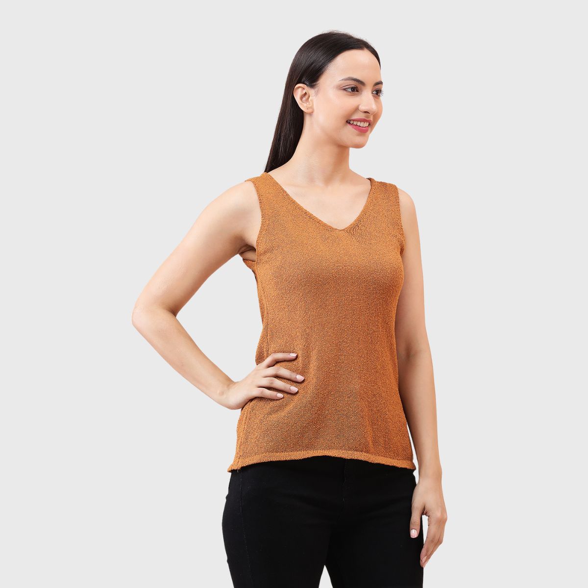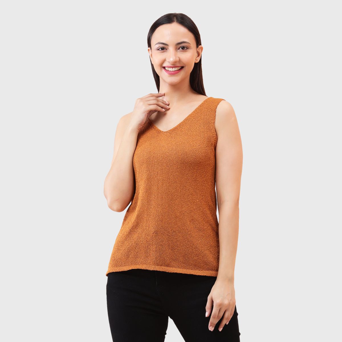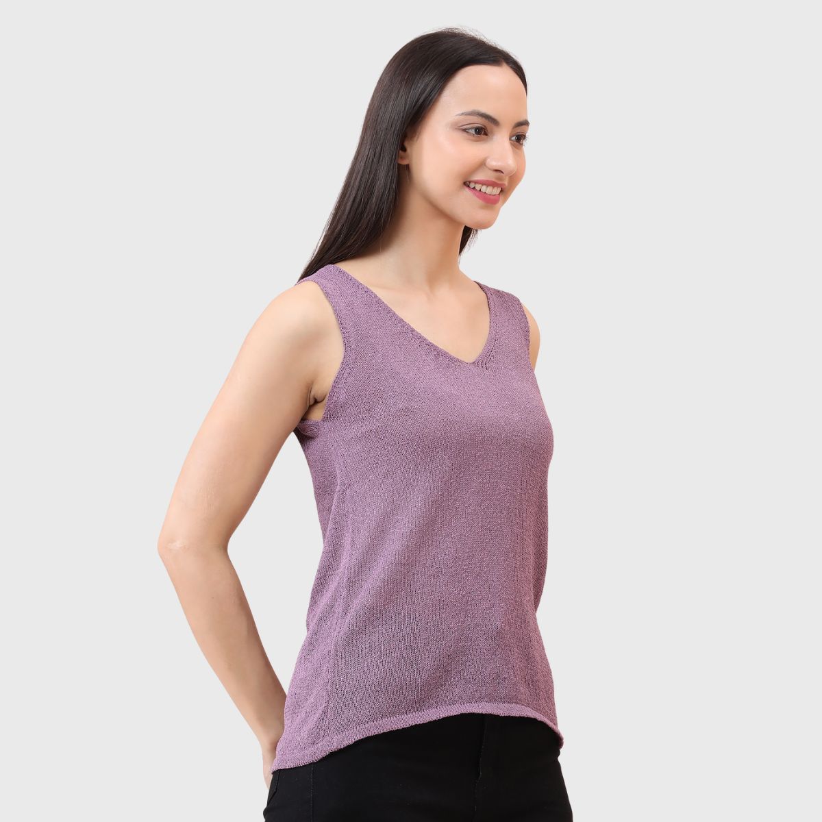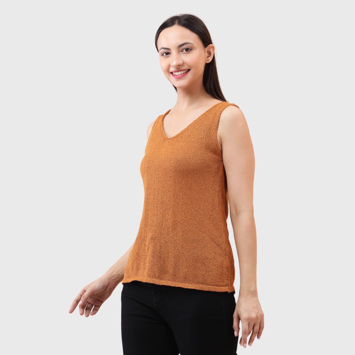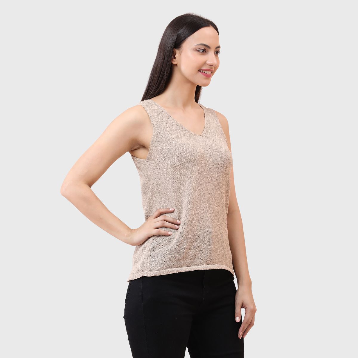 NOQUO presents a sleeveless knitted top for women, crafted in soft and breathable fabric for all-day comfort. The v-neck design adds a chic appeal to your casual wear. Perfect for summer, this versatile top pairs well with jeans or skirts. Ideal for outings, travel, or casual office wear, it’s a stylish yet practical addition to your everyday wardrobe.