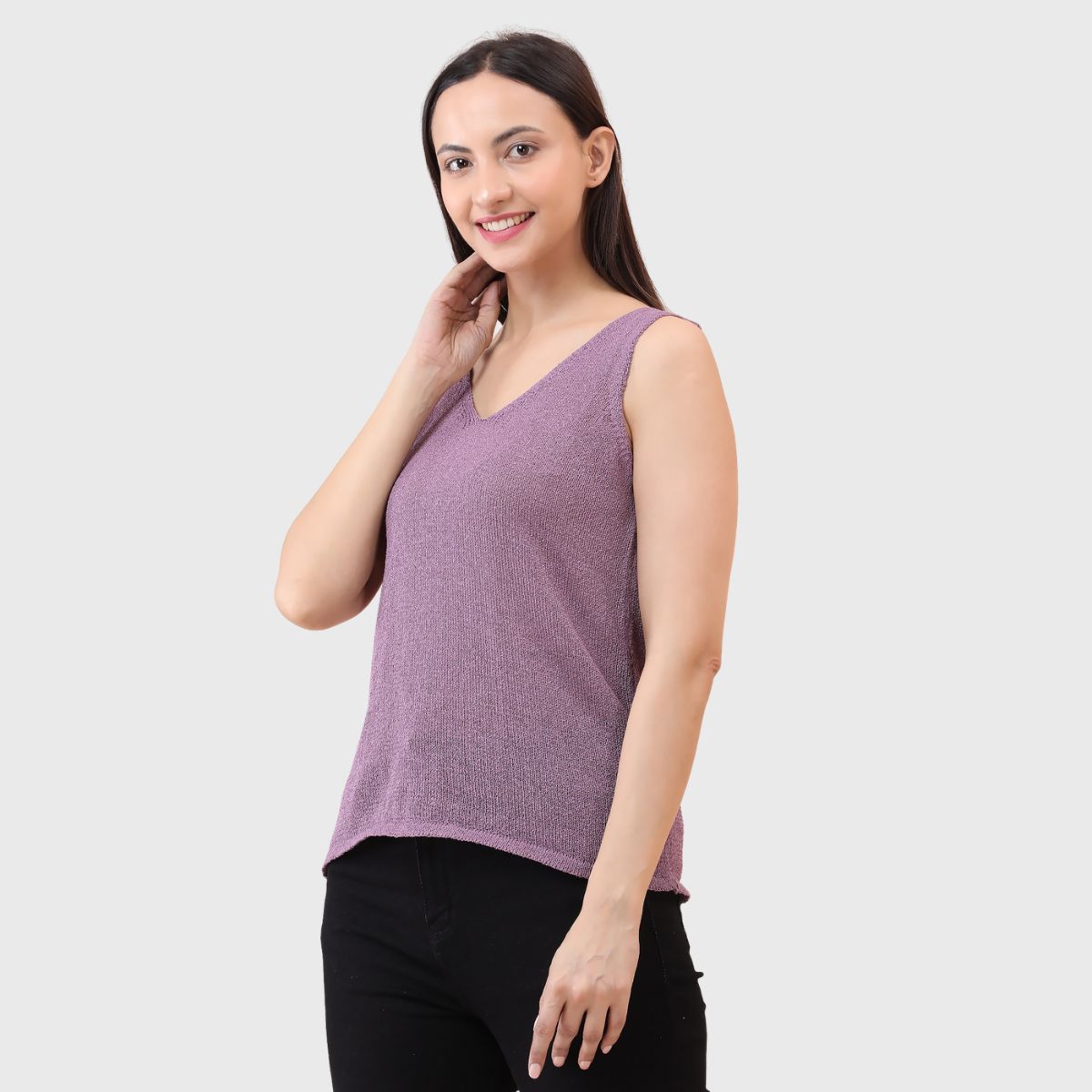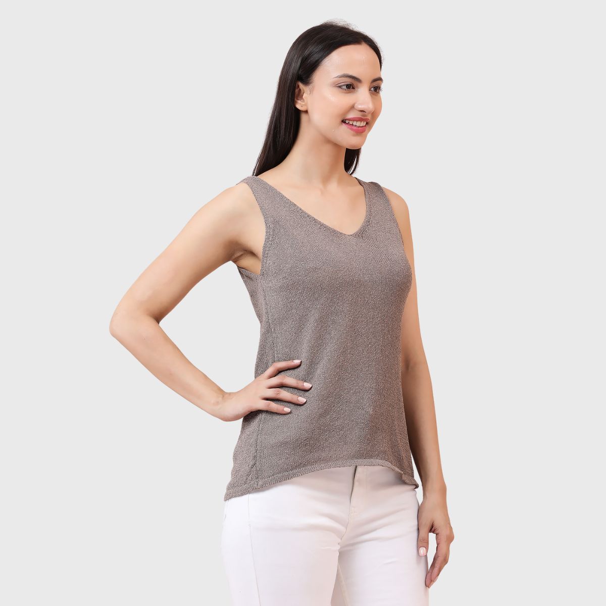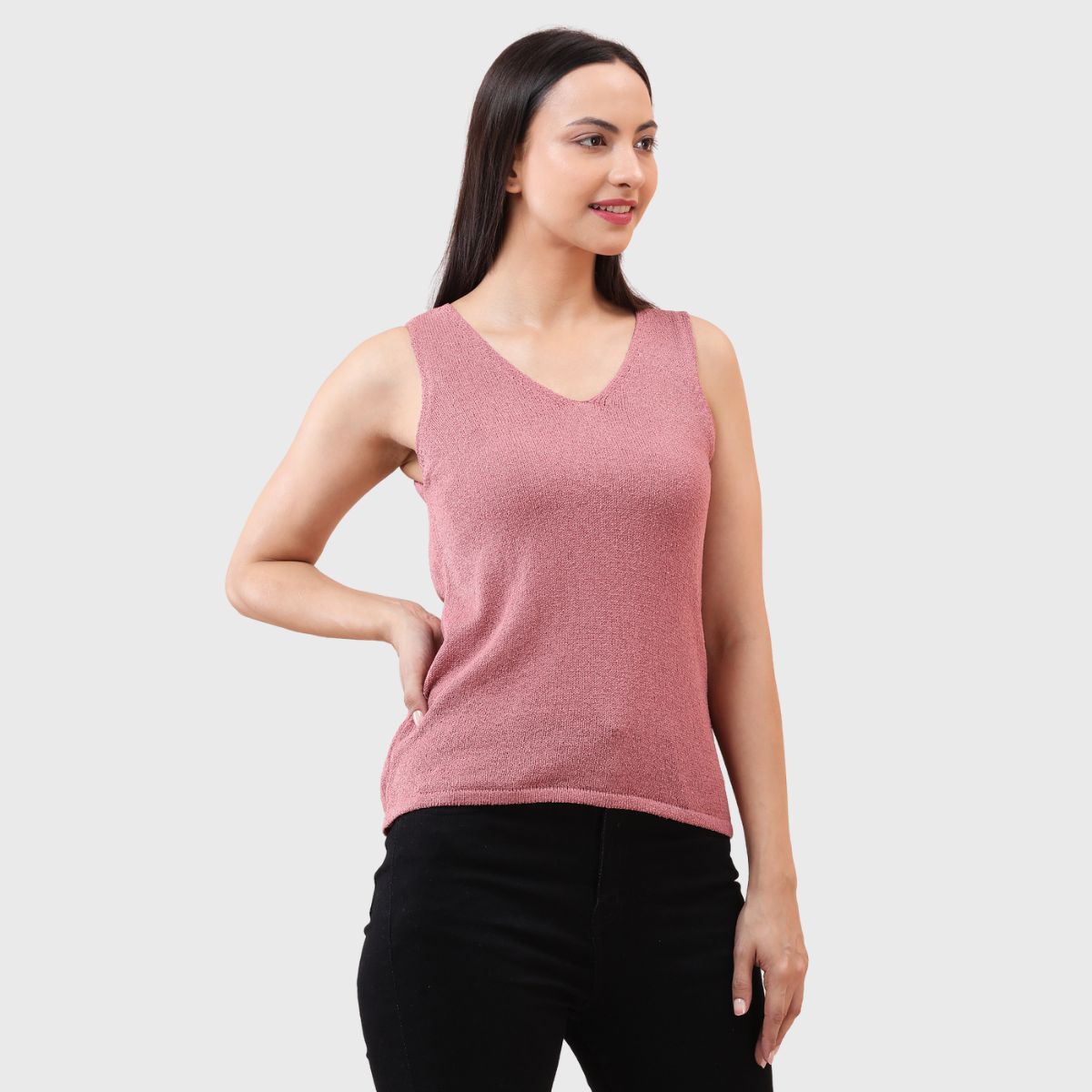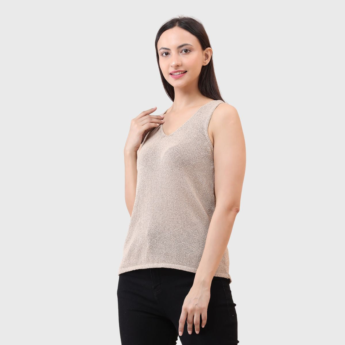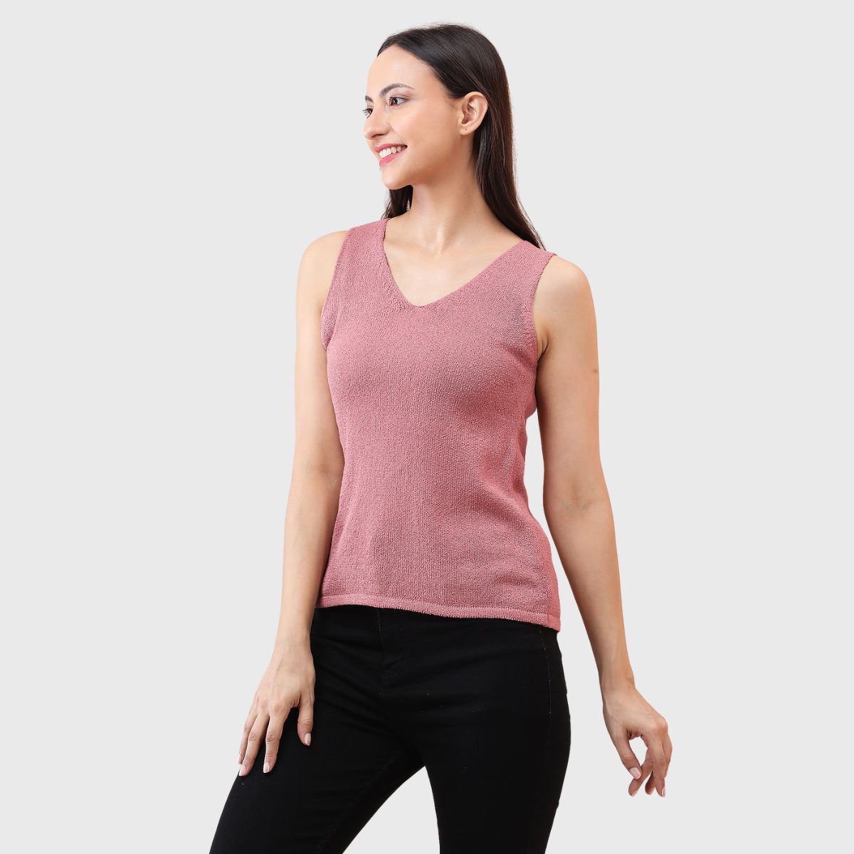 NOQUO presents a sleeveless knitted top for women, crafted in soft and breathable fabric for all-day comfort. The v-neck design adds a chic appeal to your casual wear. Perfect for summer, this versatile top pairs well with jeans or skirts. Ideal for outings, travel, or casual office wear, it’s a stylish yet practical addition to your everyday wardrobe.