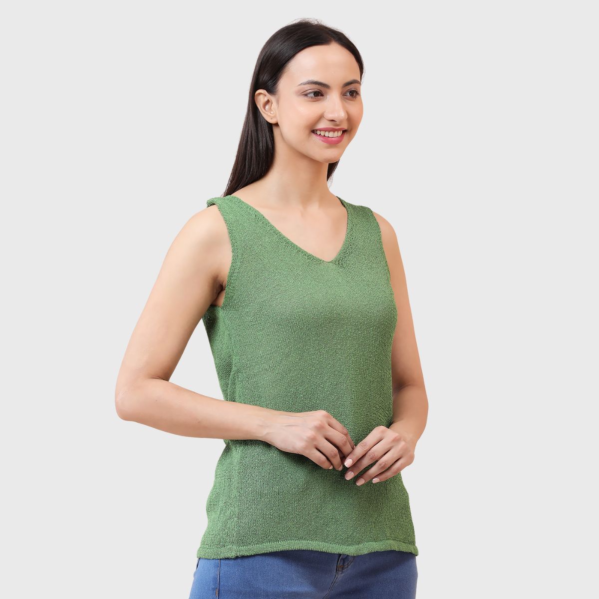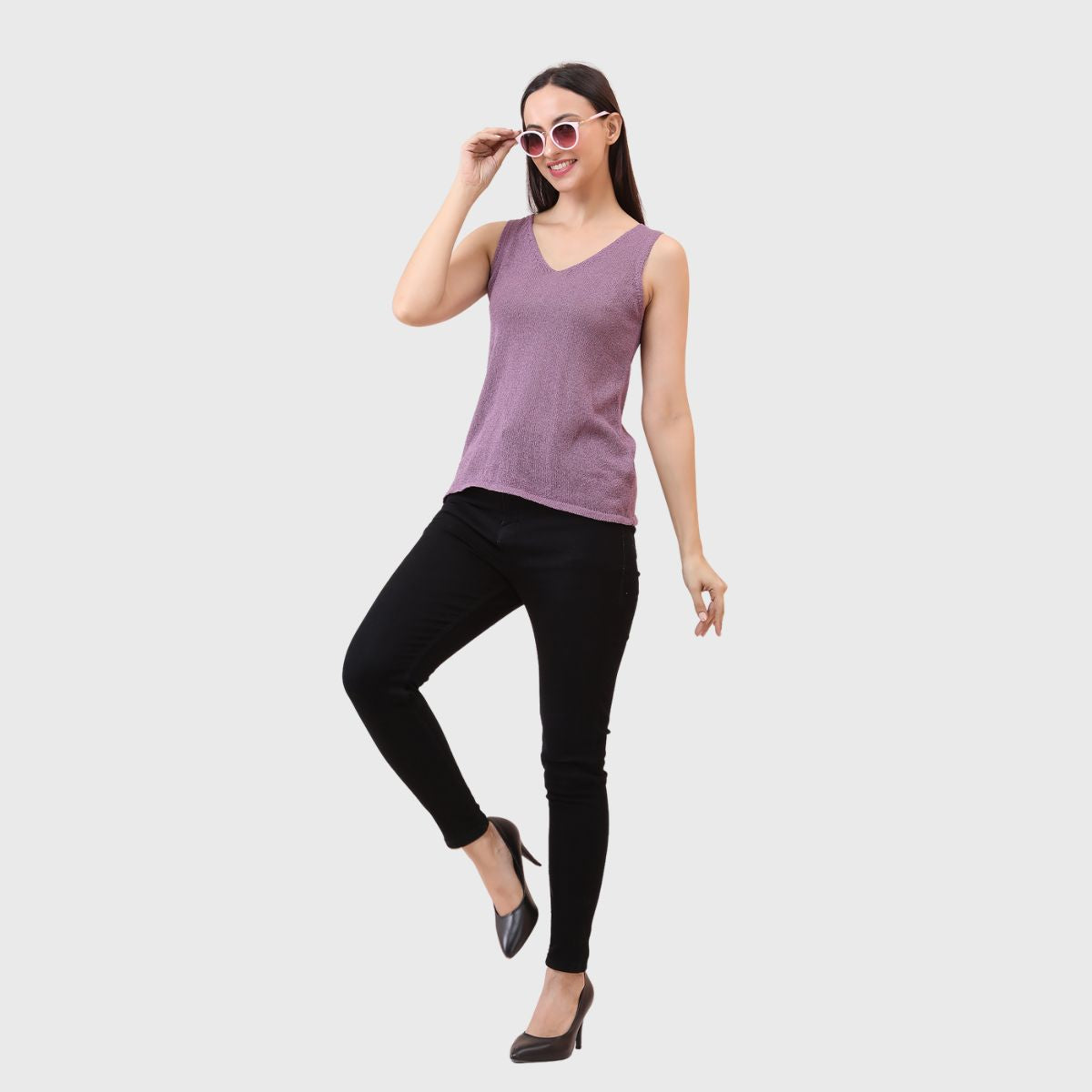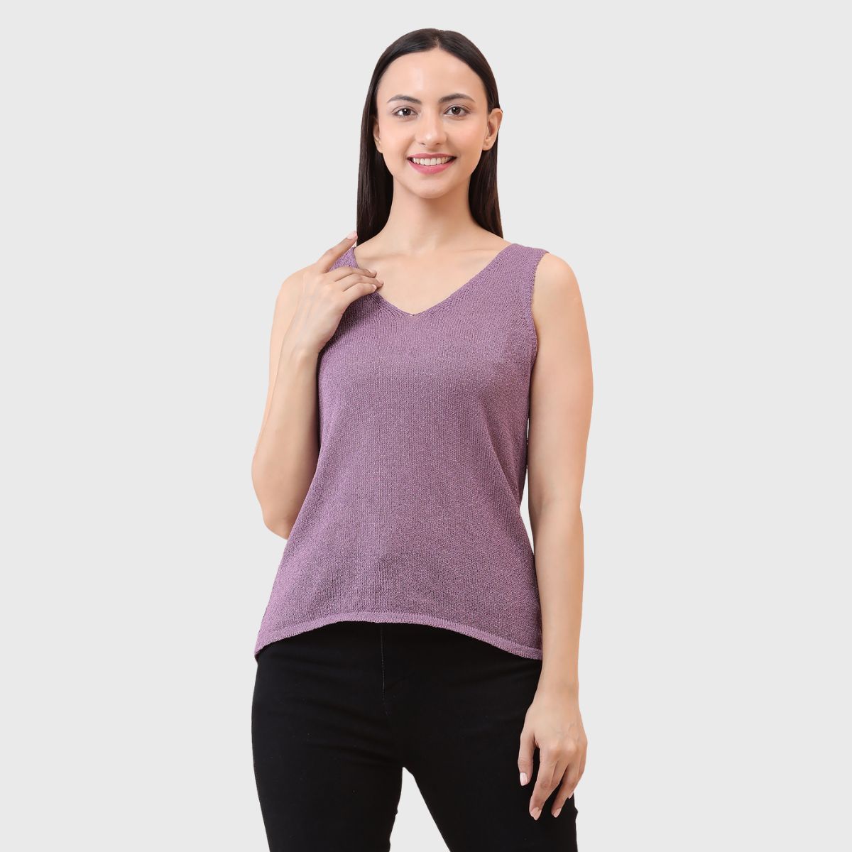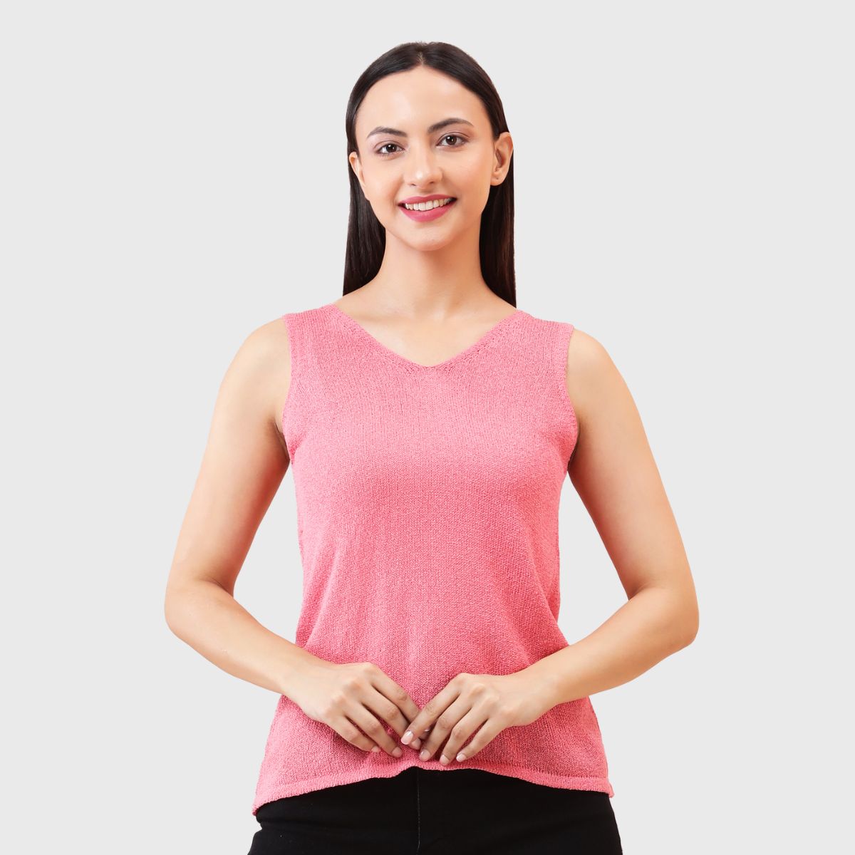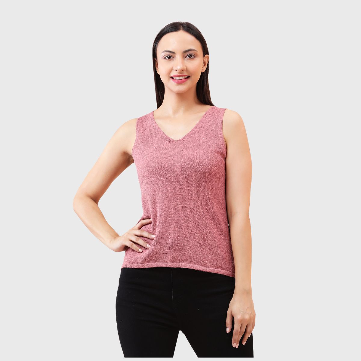 NOQUO presents a sleeveless knitted top for women, crafted in soft and breathable fabric for all-day comfort. The v-neck design adds a chic appeal to your casual wear. Perfect for summer, this versatile top pairs well with jeans or skirts. Ideal for outings, travel, or casual office wear, it’s a stylish yet practical addition to your everyday wardrobe.