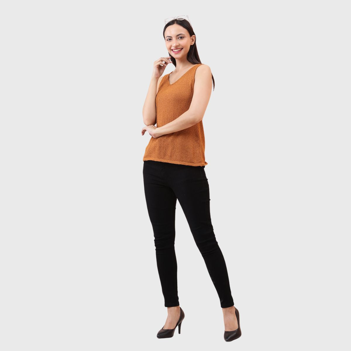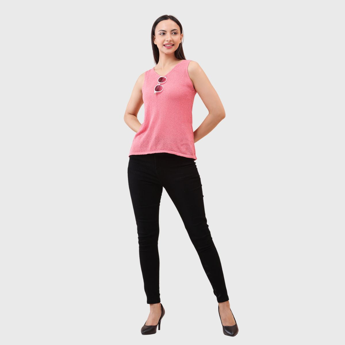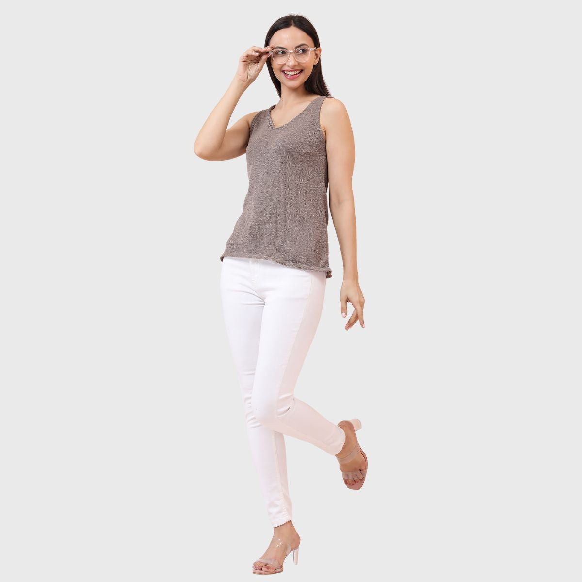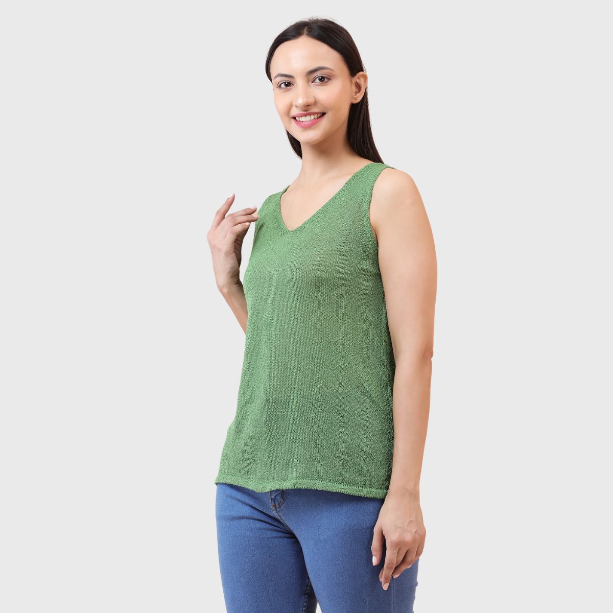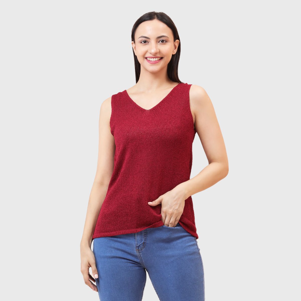 NOQUO presents a sleeveless knitted top for women, crafted in soft and breathable fabric for all-day comfort. The v-neck design adds a chic appeal to your casual wear. Perfect for summer, this versatile top pairs well with jeans or skirts. Ideal for outings, travel, or casual office wear, it’s a stylish yet practical addition to your everyday wardrobe.