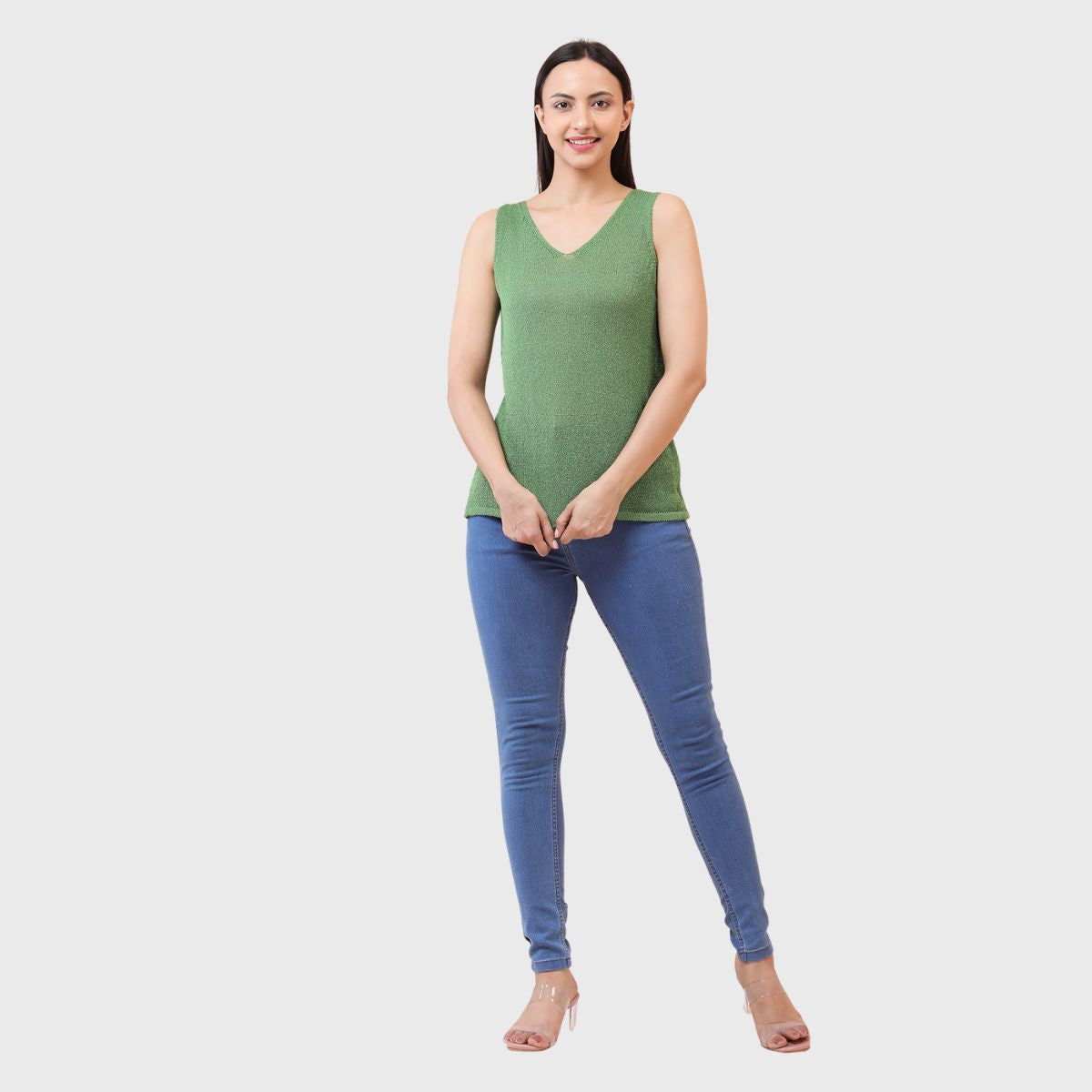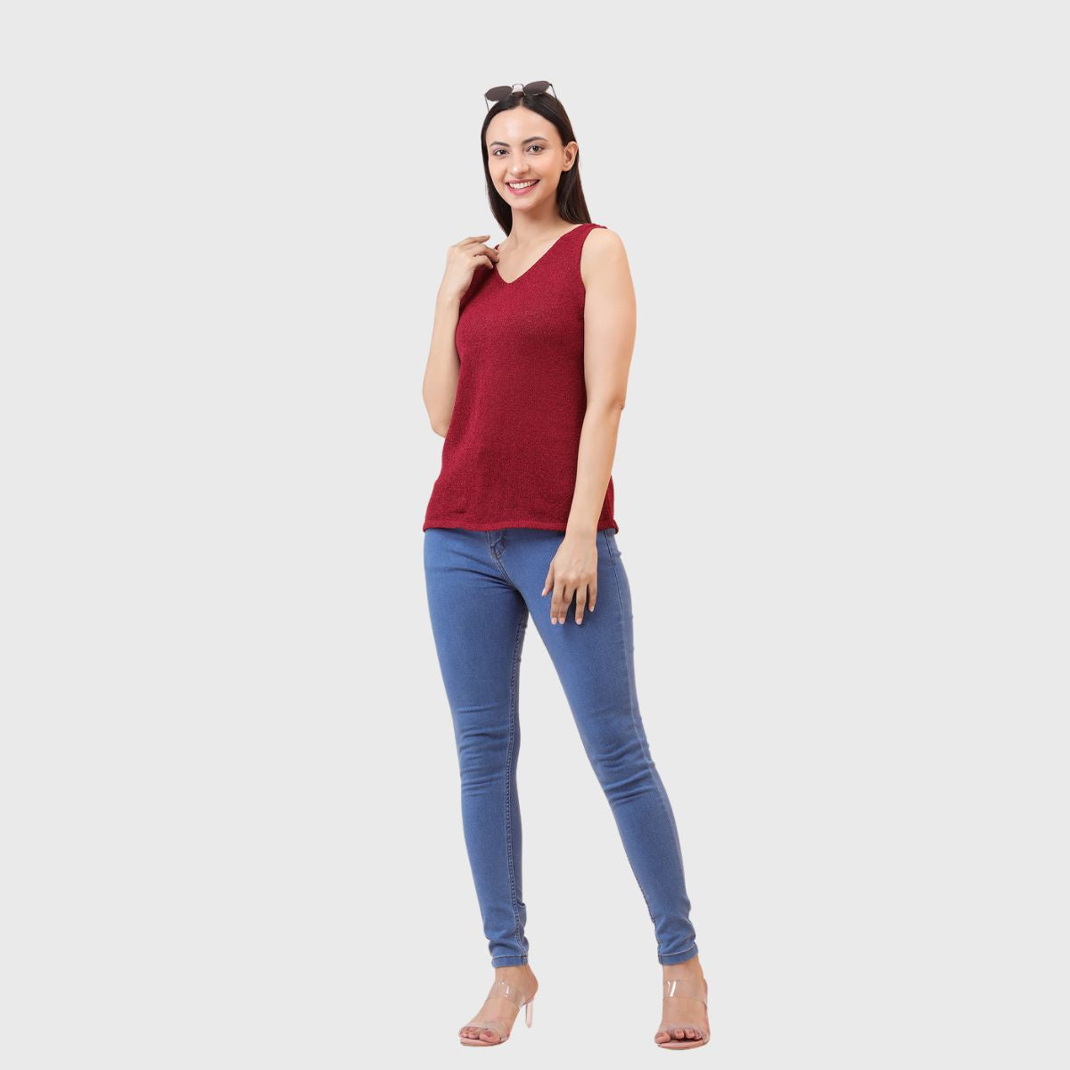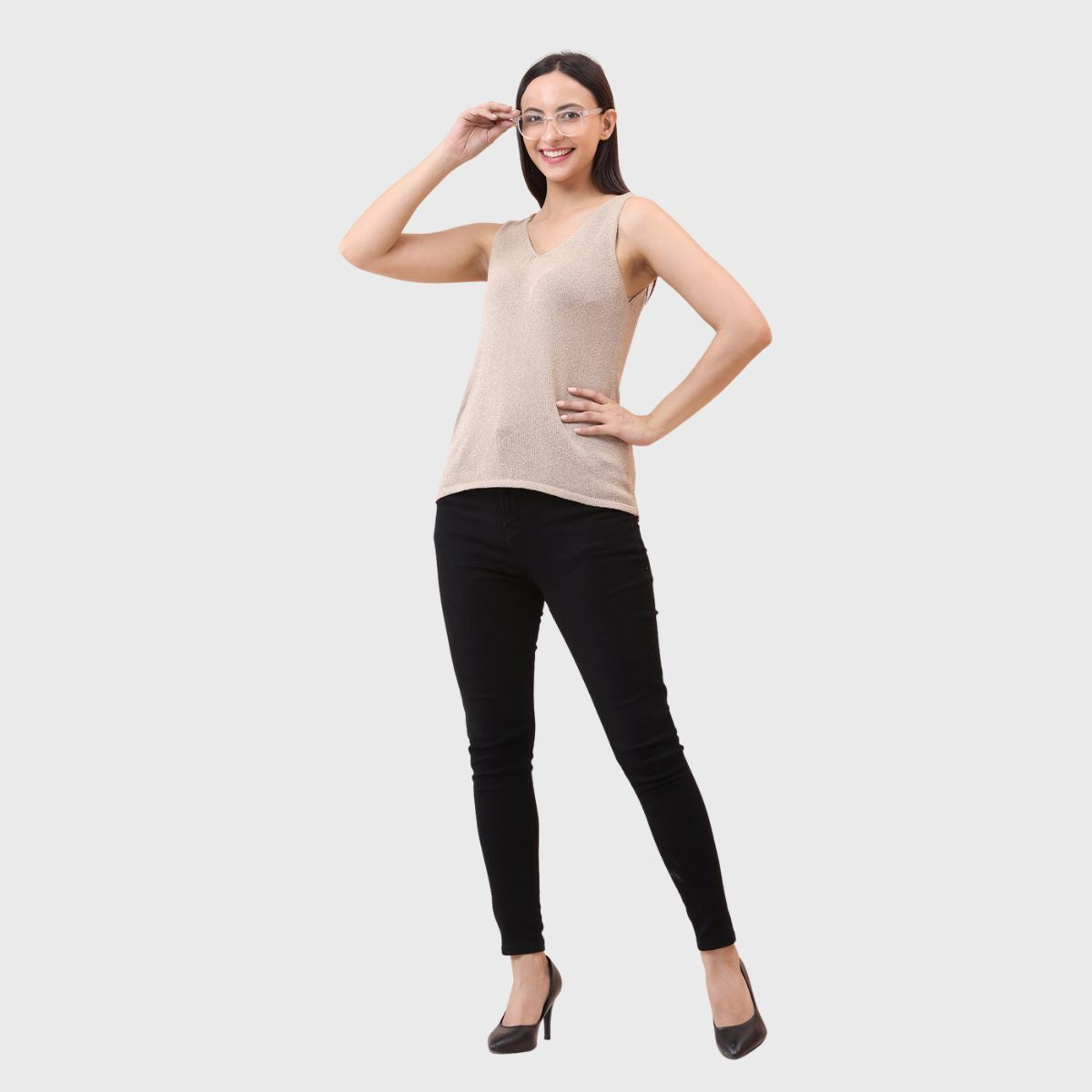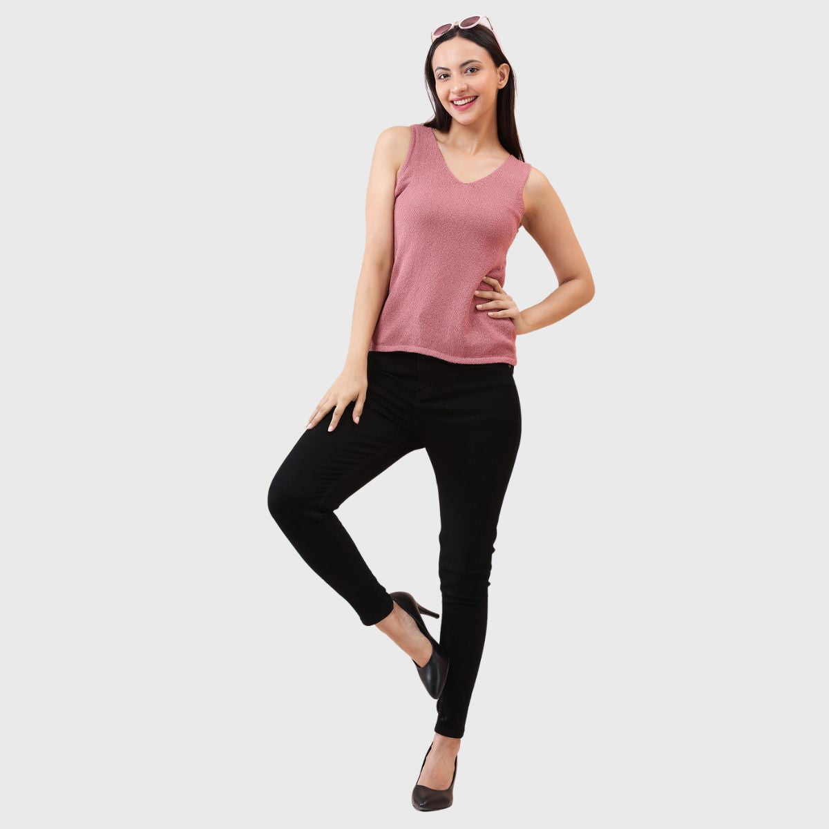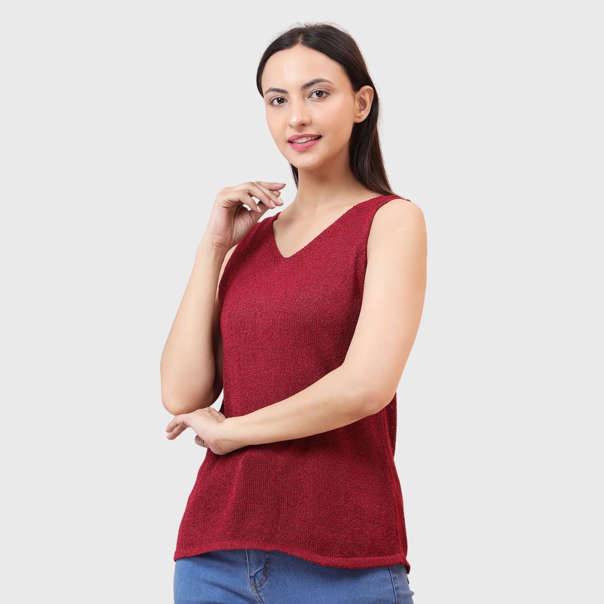 NOQUO presents a sleeveless knitted top for women, crafted in soft and breathable fabric for all-day comfort. The v-neck design adds a chic appeal to your casual wear. Perfect for summer, this versatile top pairs well with jeans or skirts. Ideal for outings, travel, or casual office wear, it’s a stylish yet practical addition to your everyday wardrobe.