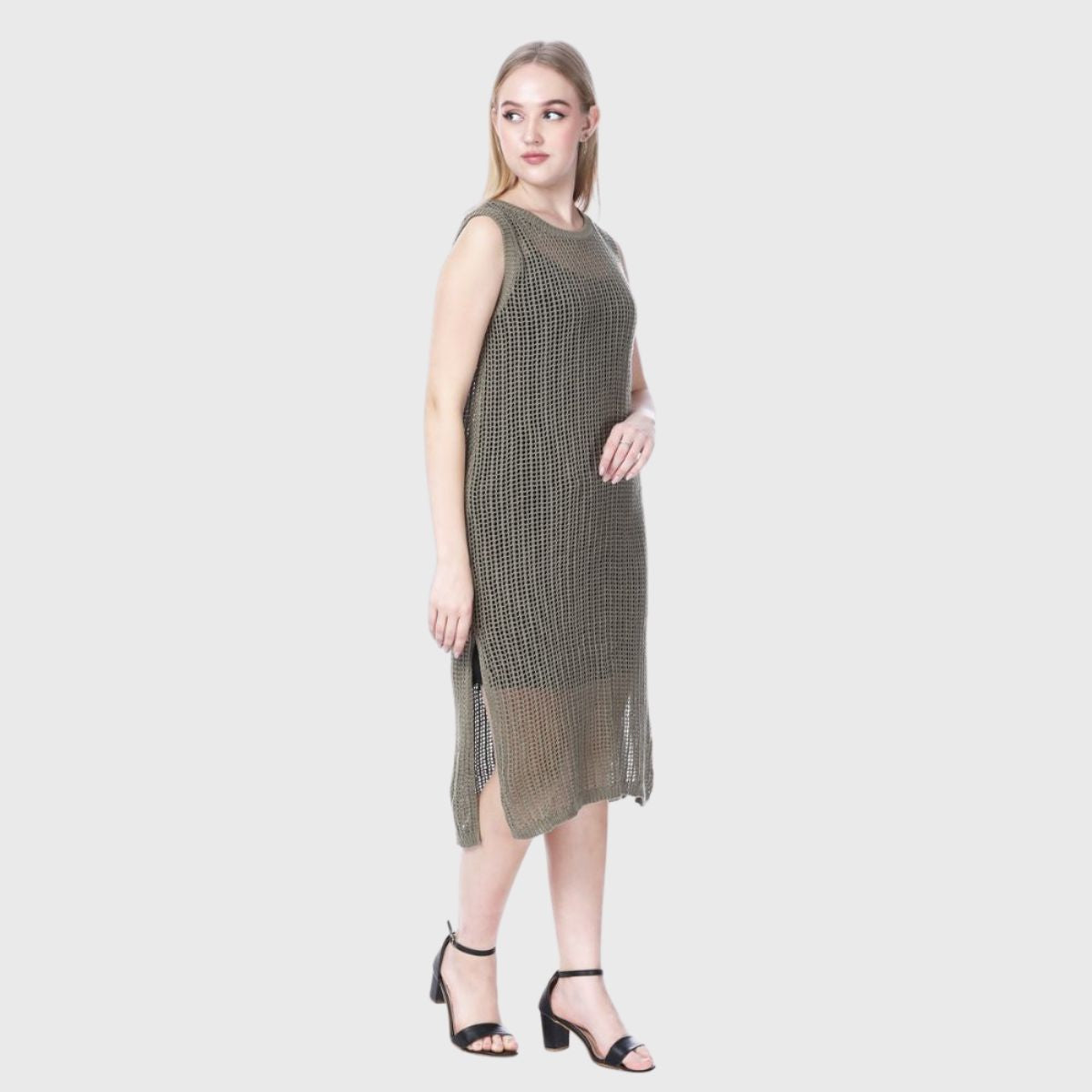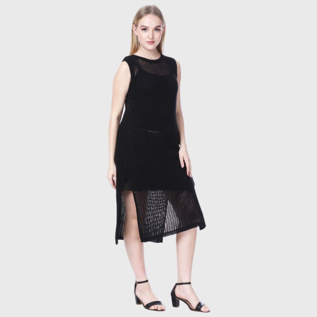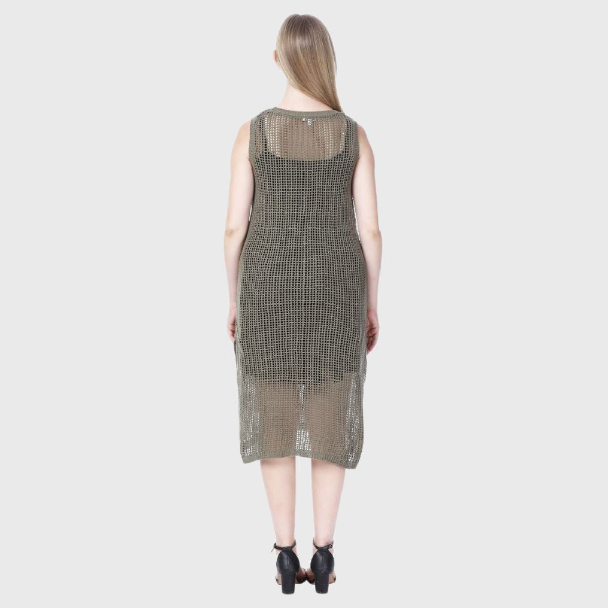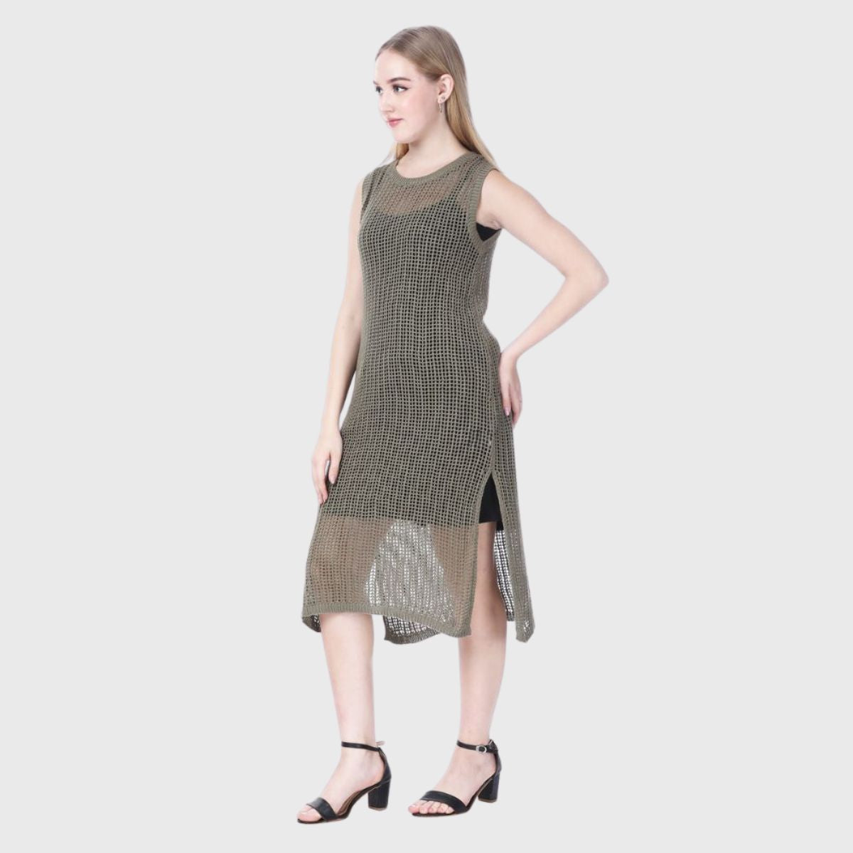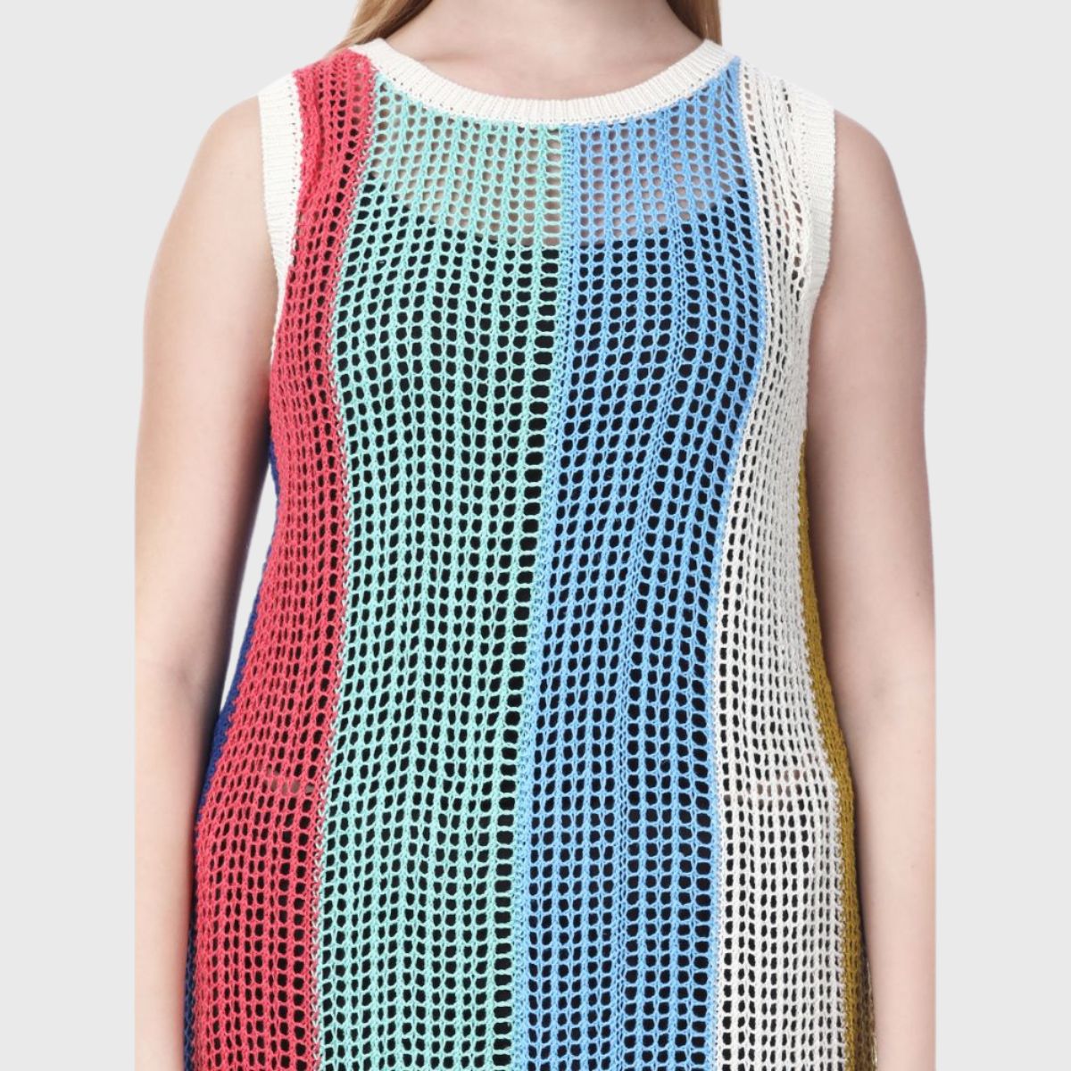 Noquo’s multicolor crochet dress is a summer essential. Featuring handcrafted open-knit fabric in eye-catching stripes, this sleeveless midi is perfect as a beach cover-up or festival outfit. Lightweight, breathable, and stylishly relaxed—effortless layering never looked this beautiful.