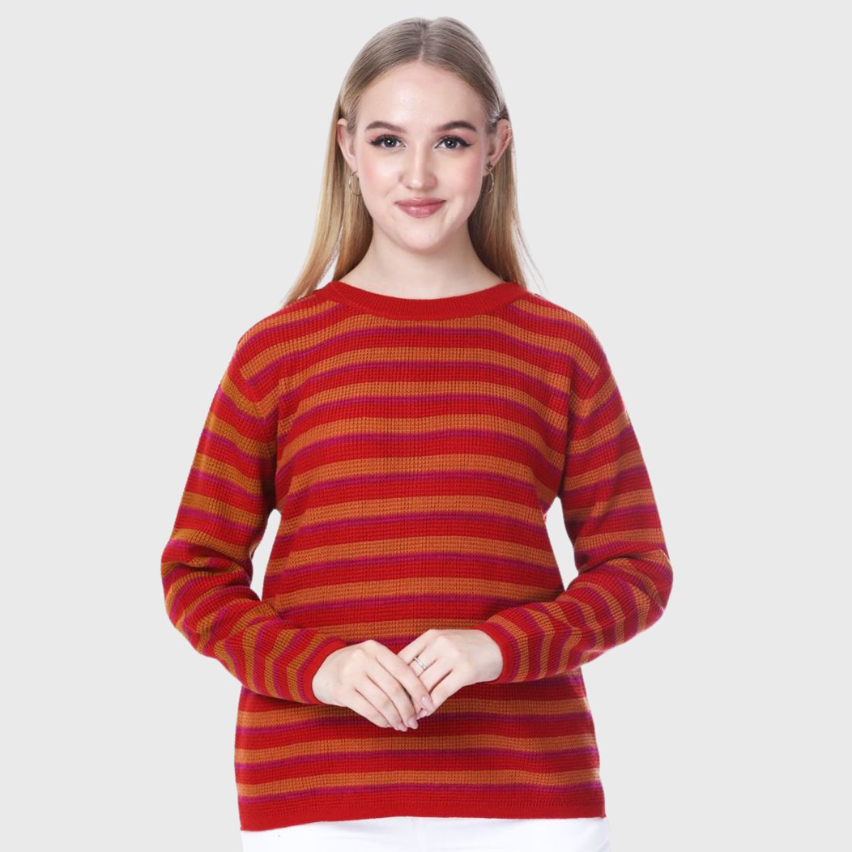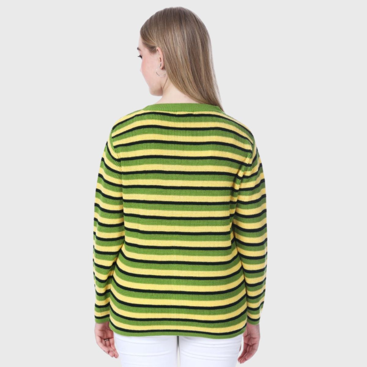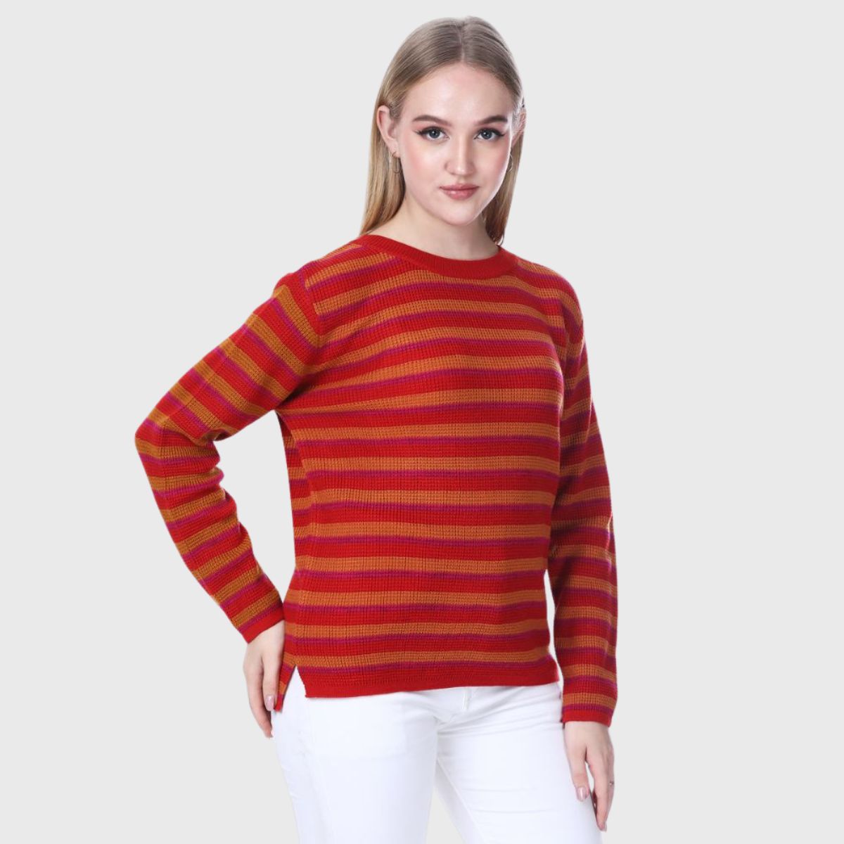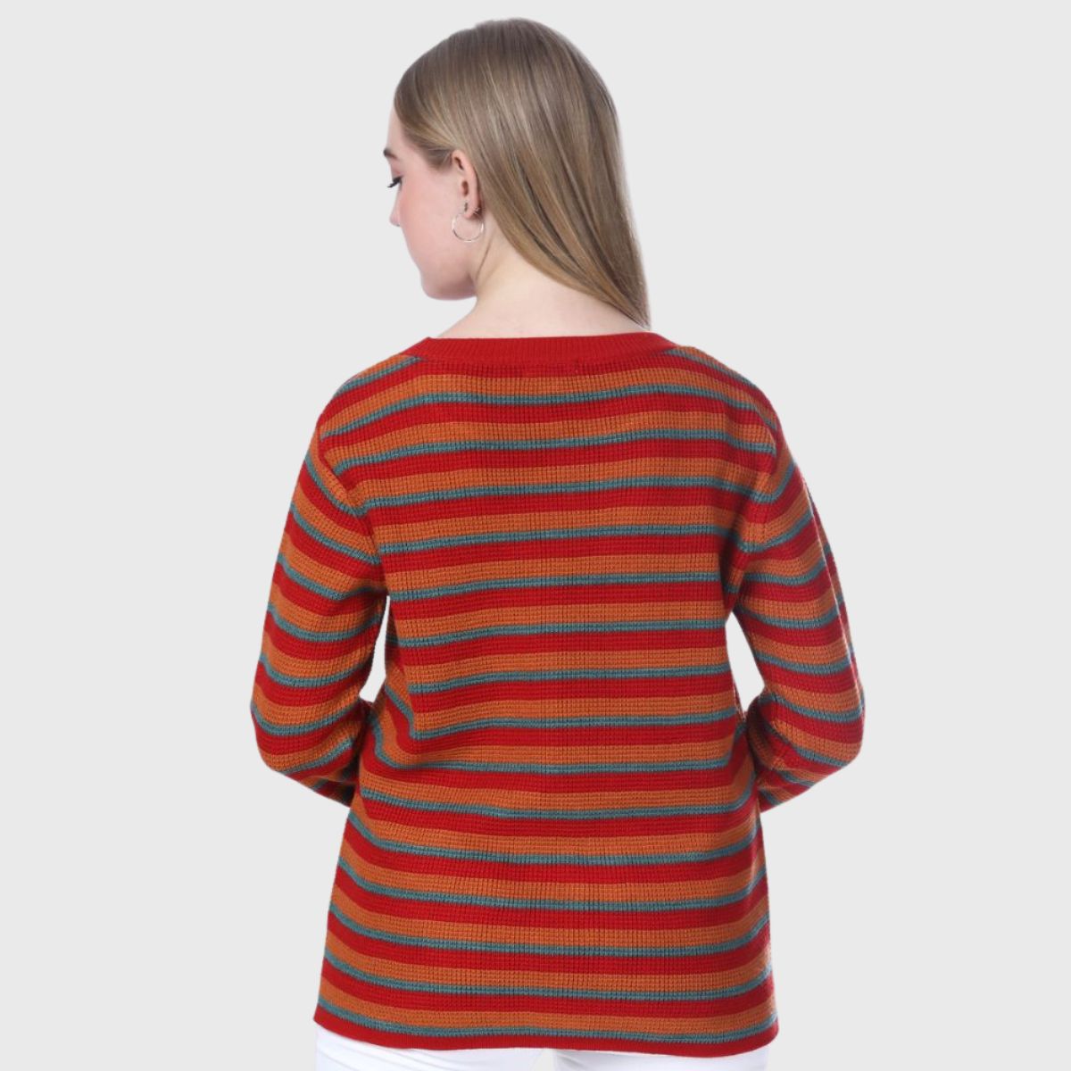 Stay stylish and warm this winter with Noquo’s multicolor striped sweater. Made from knit fabric, it offers a cozy fit and chic look. Perfect for daily wear, it pairs well with jeans or jeggings.