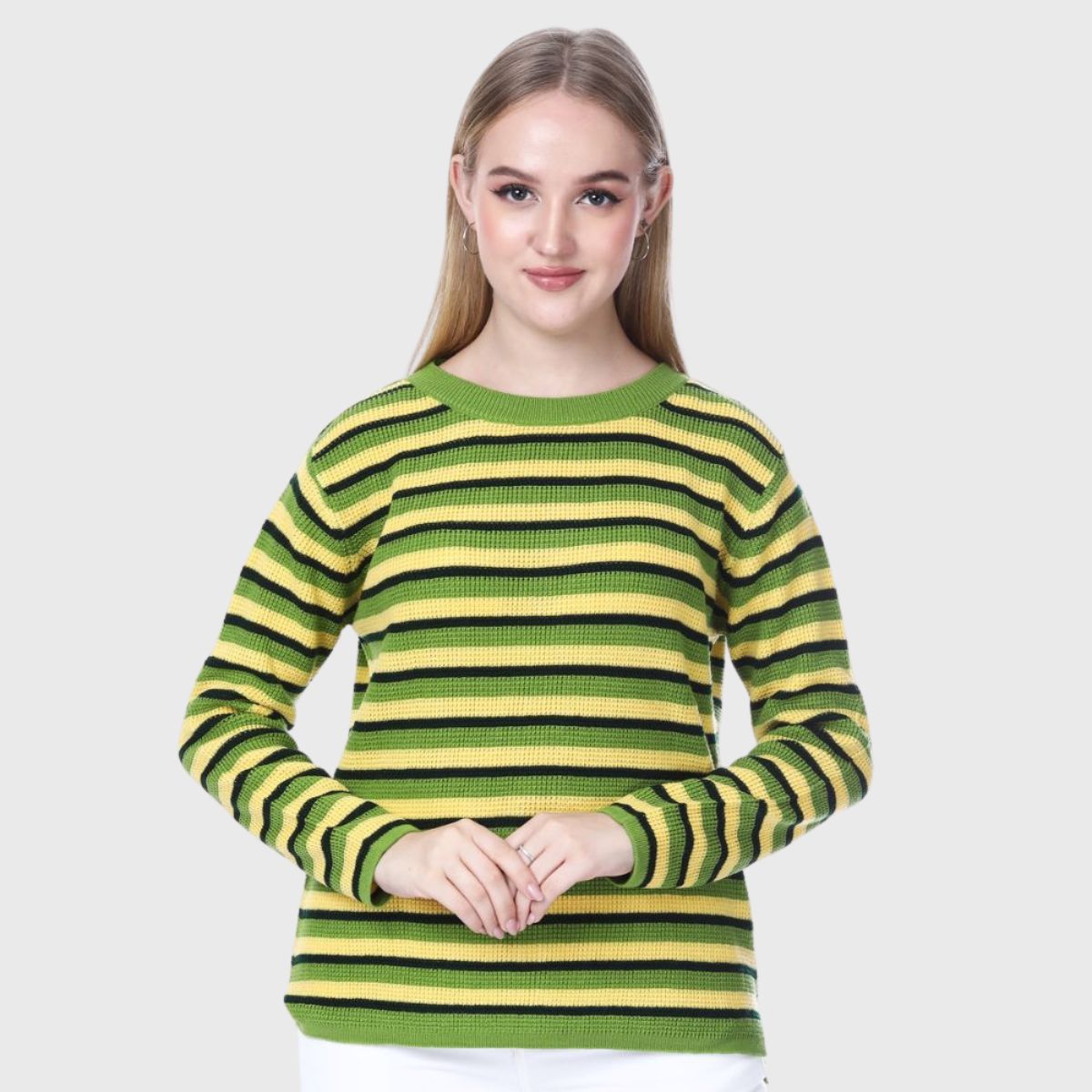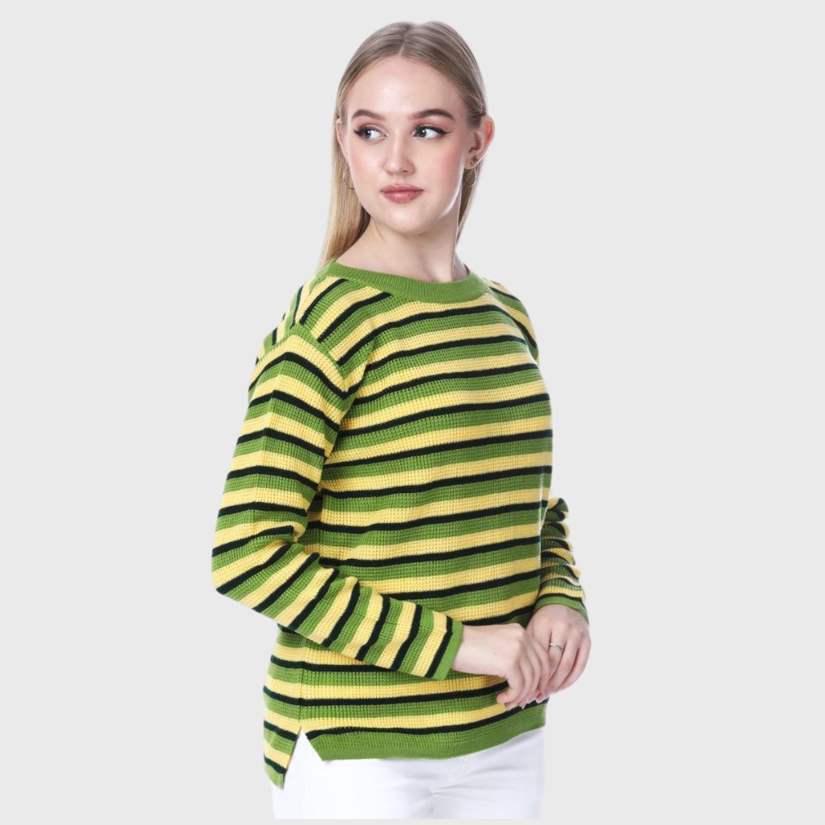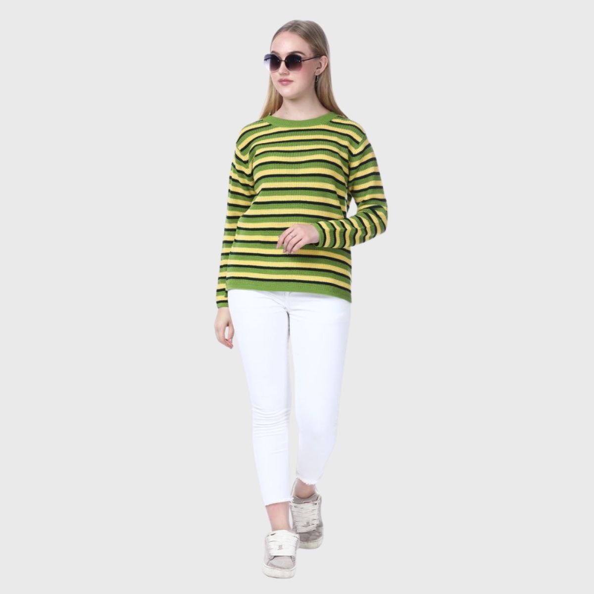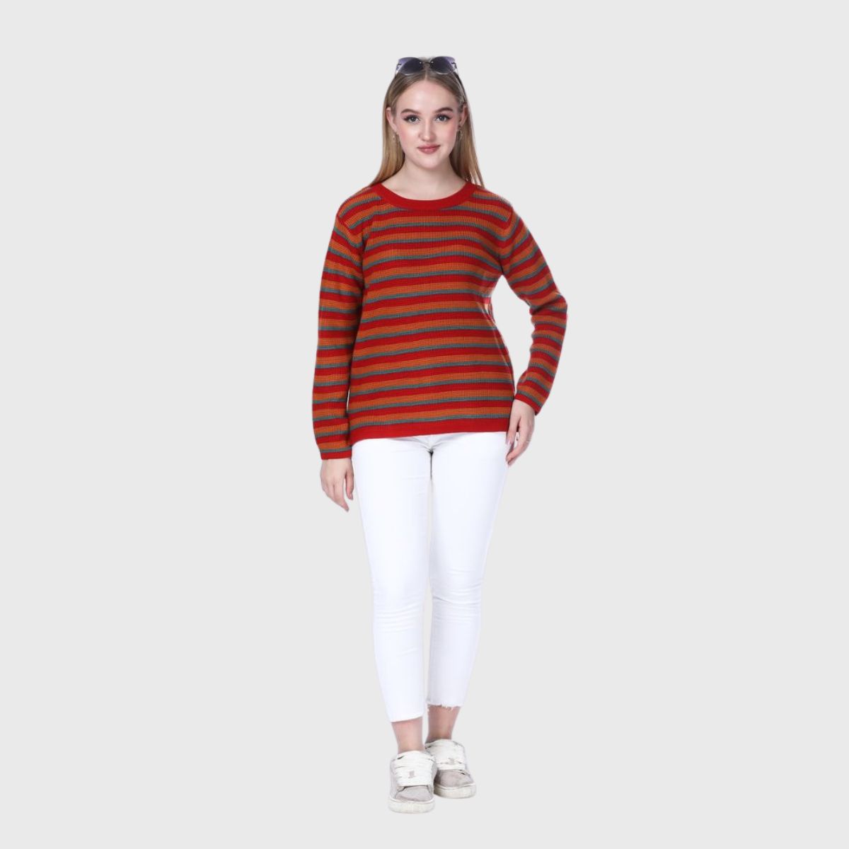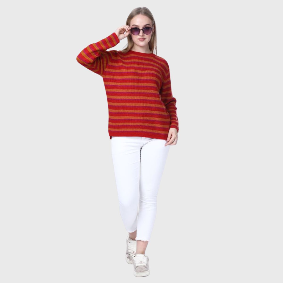 Stay stylish and warm this winter with Noquo’s multicolor striped sweater. Made from knit fabric, it offers a cozy fit and chic look. Perfect for daily wear, it pairs well with jeans or jeggings.