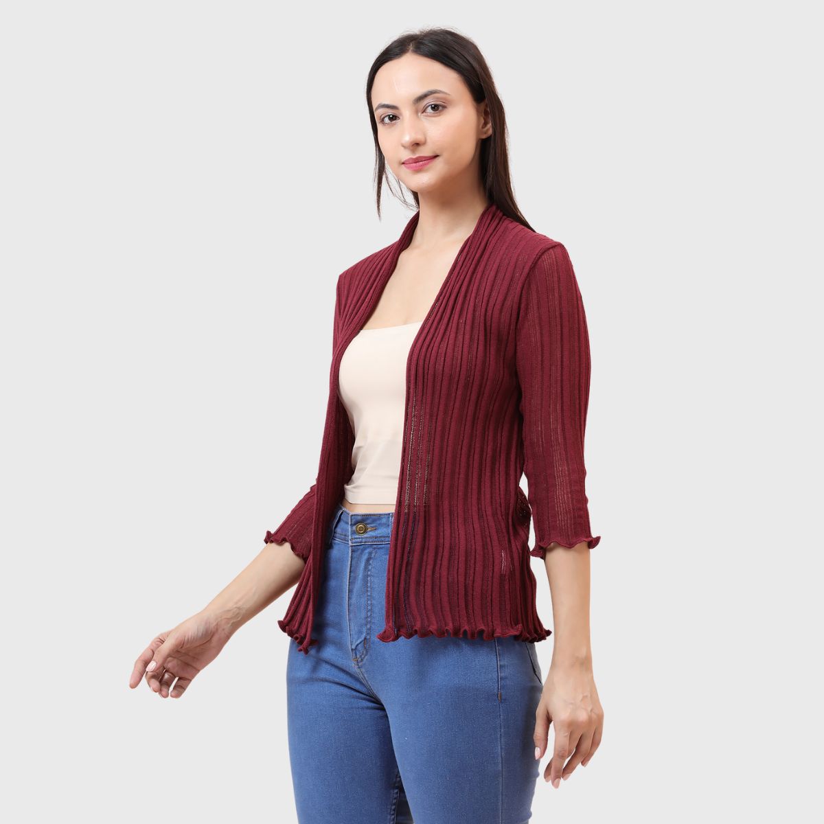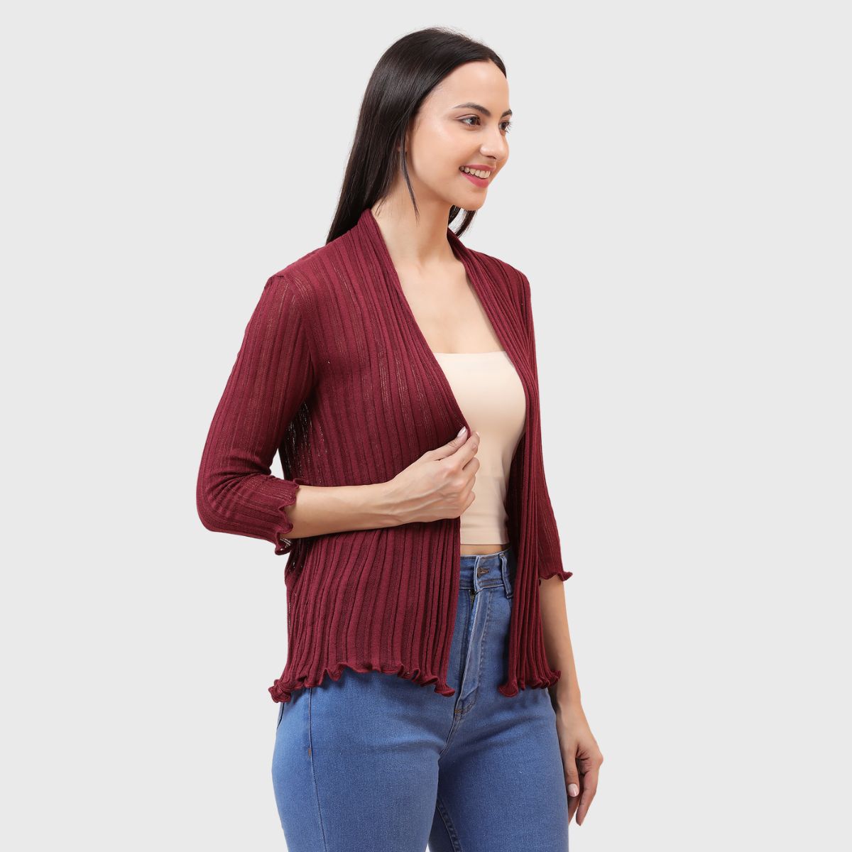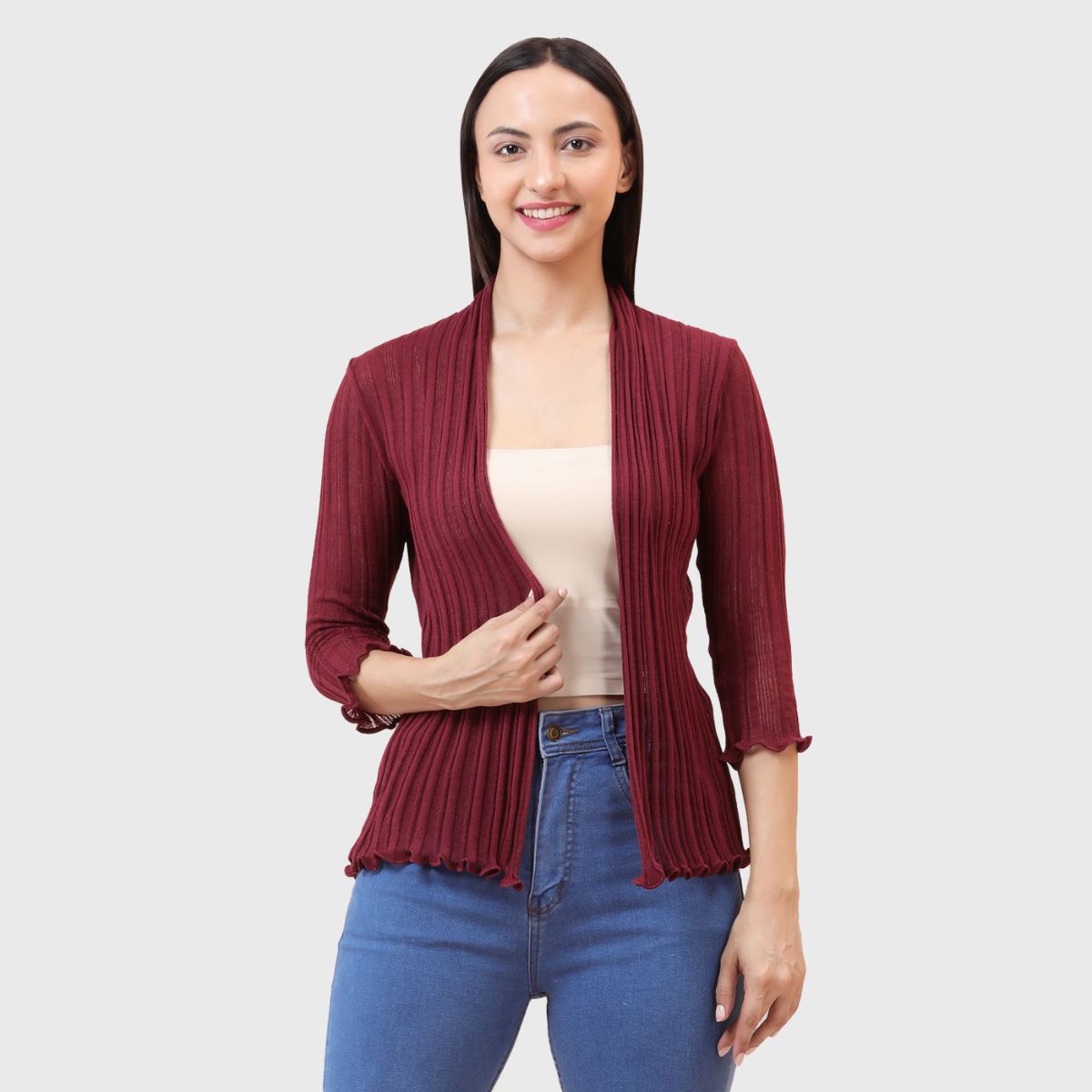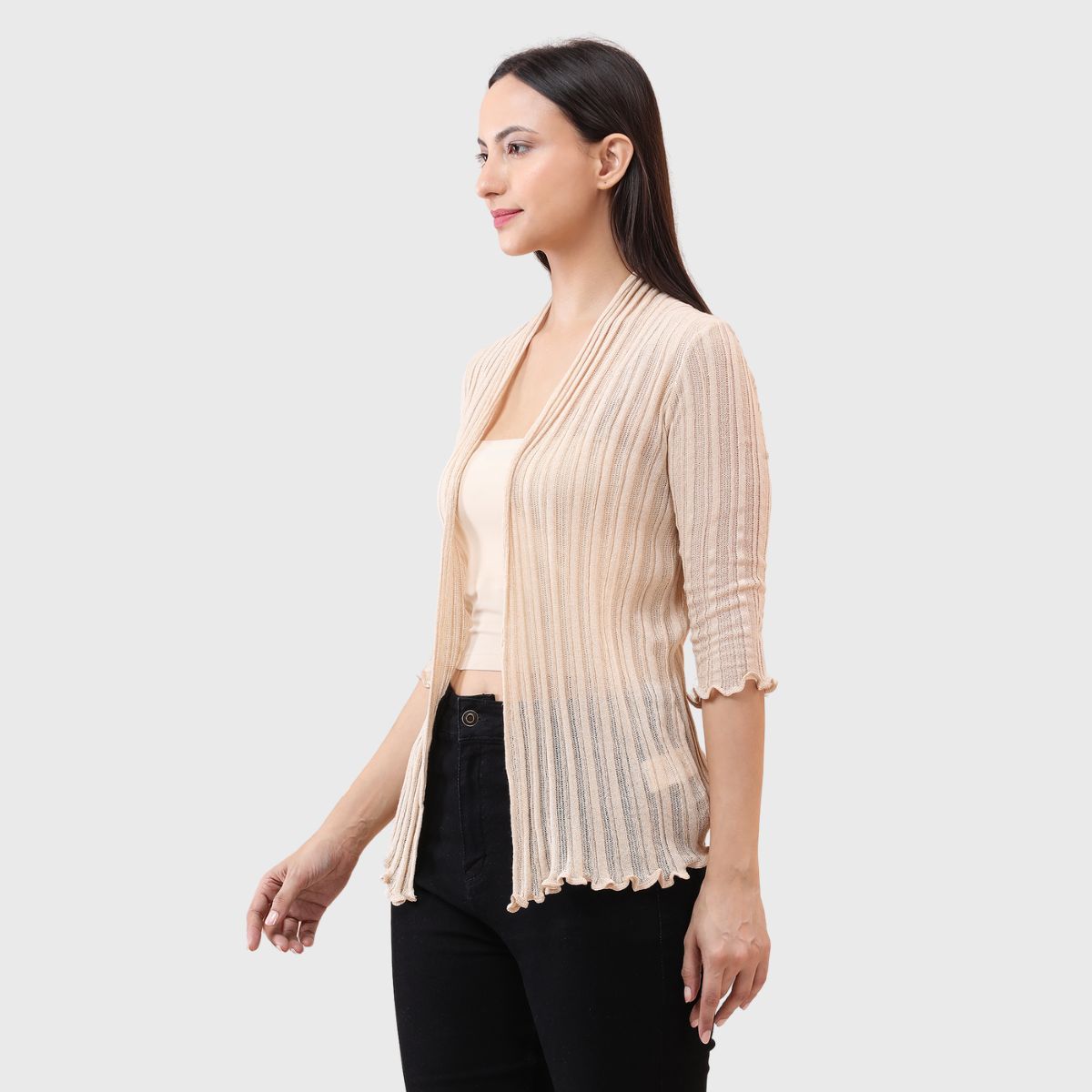 Elevate your layering game with this NOQUO ribbed open-front shrugs. Made from soft, stretchable knit, it features three-quarter sleeves and lettuce-edge hems. The relaxed fit and neutral color make it perfect for pairing with various outfits, whether for work or casual outings. Easy to style and care for, this shrug is a must-have for effortless everyday fashion.