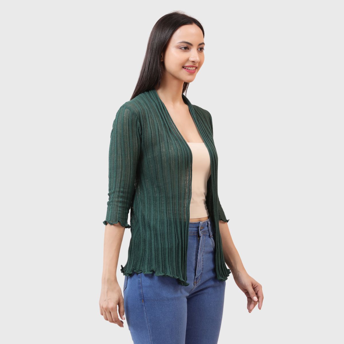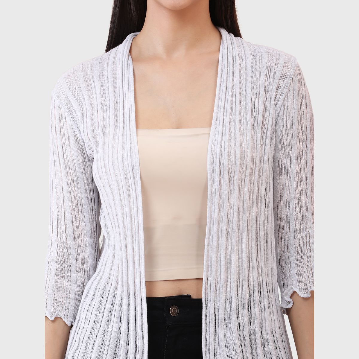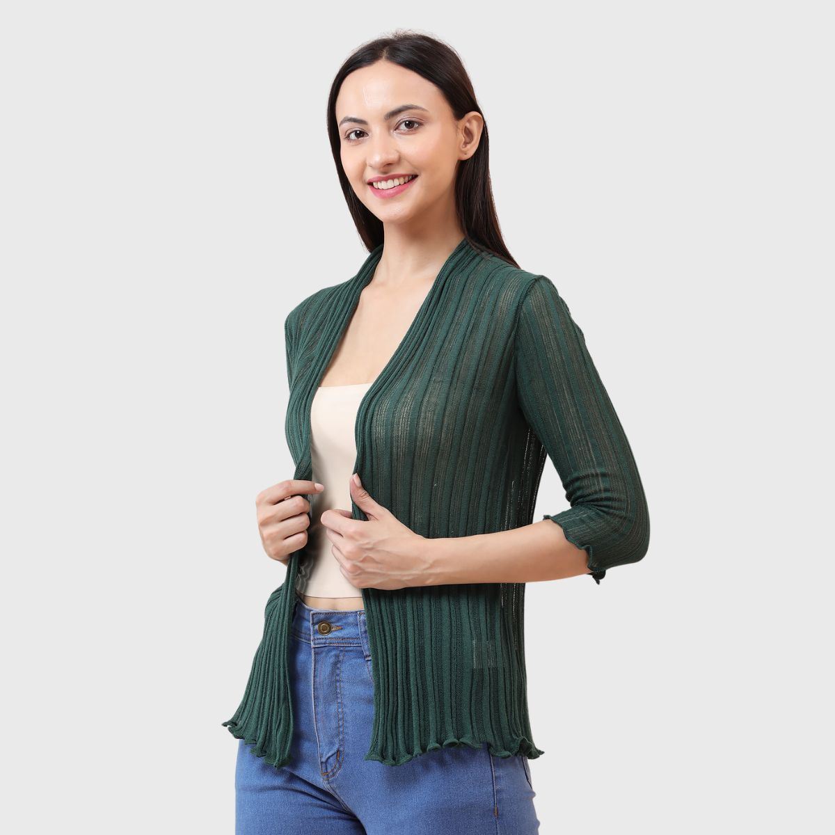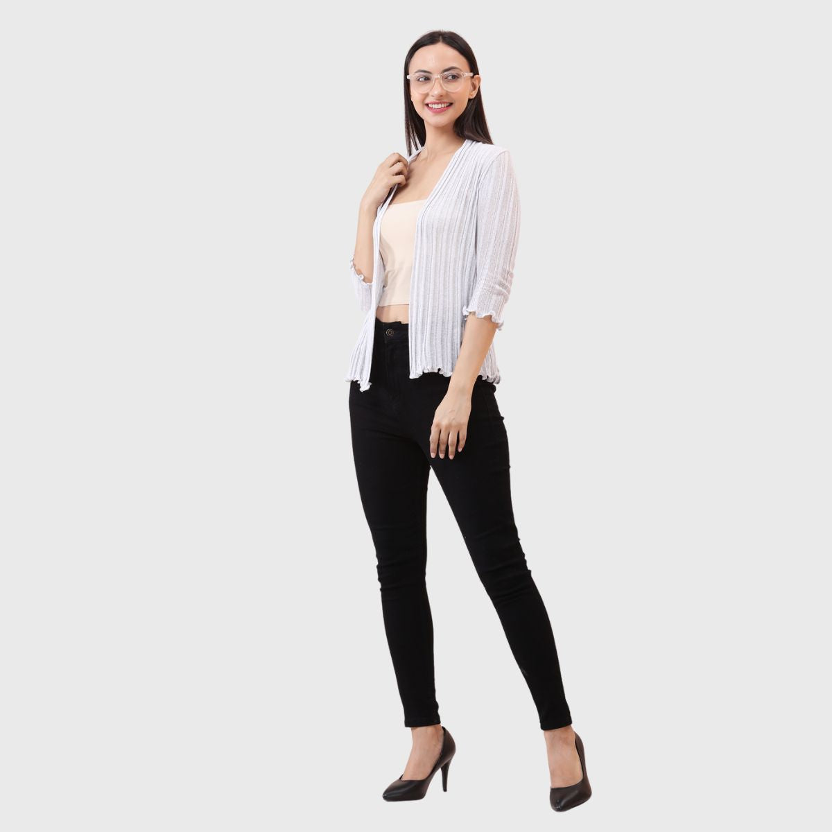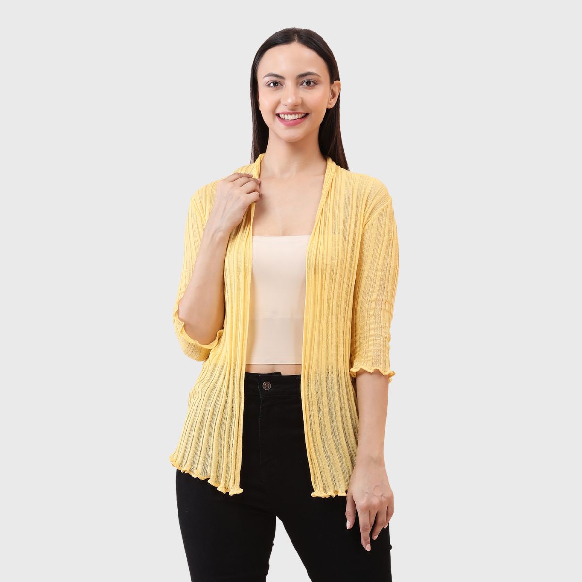 Elevate your layering game with this NOQUO ribbed open-front shrugs. Made from soft, stretchable knit, it features three-quarter sleeves and lettuce-edge hems. The relaxed fit and neutral color make it perfect for pairing with various outfits, whether for work or casual outings. Easy to style and care for, this shrug is a must-have for effortless everyday fashion.