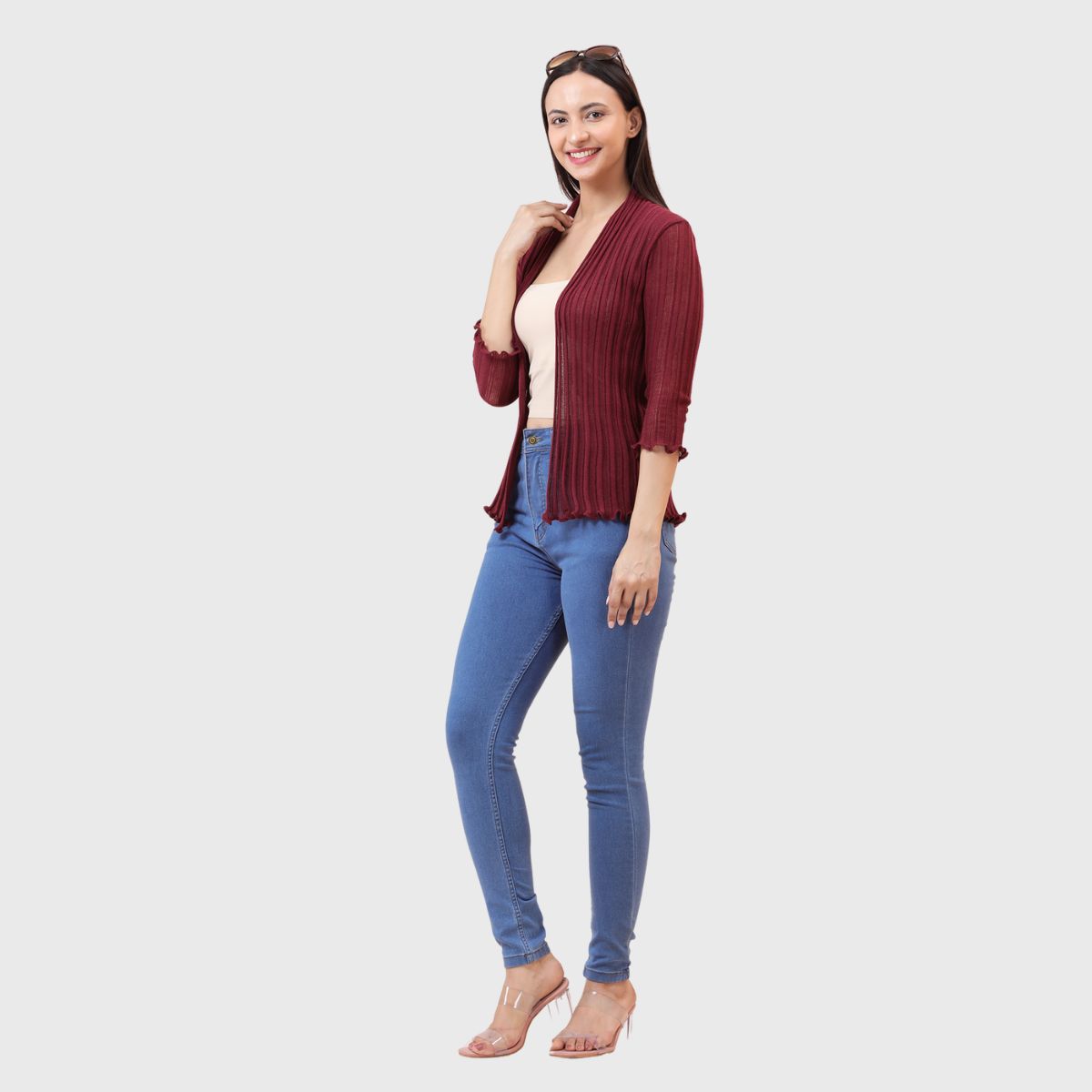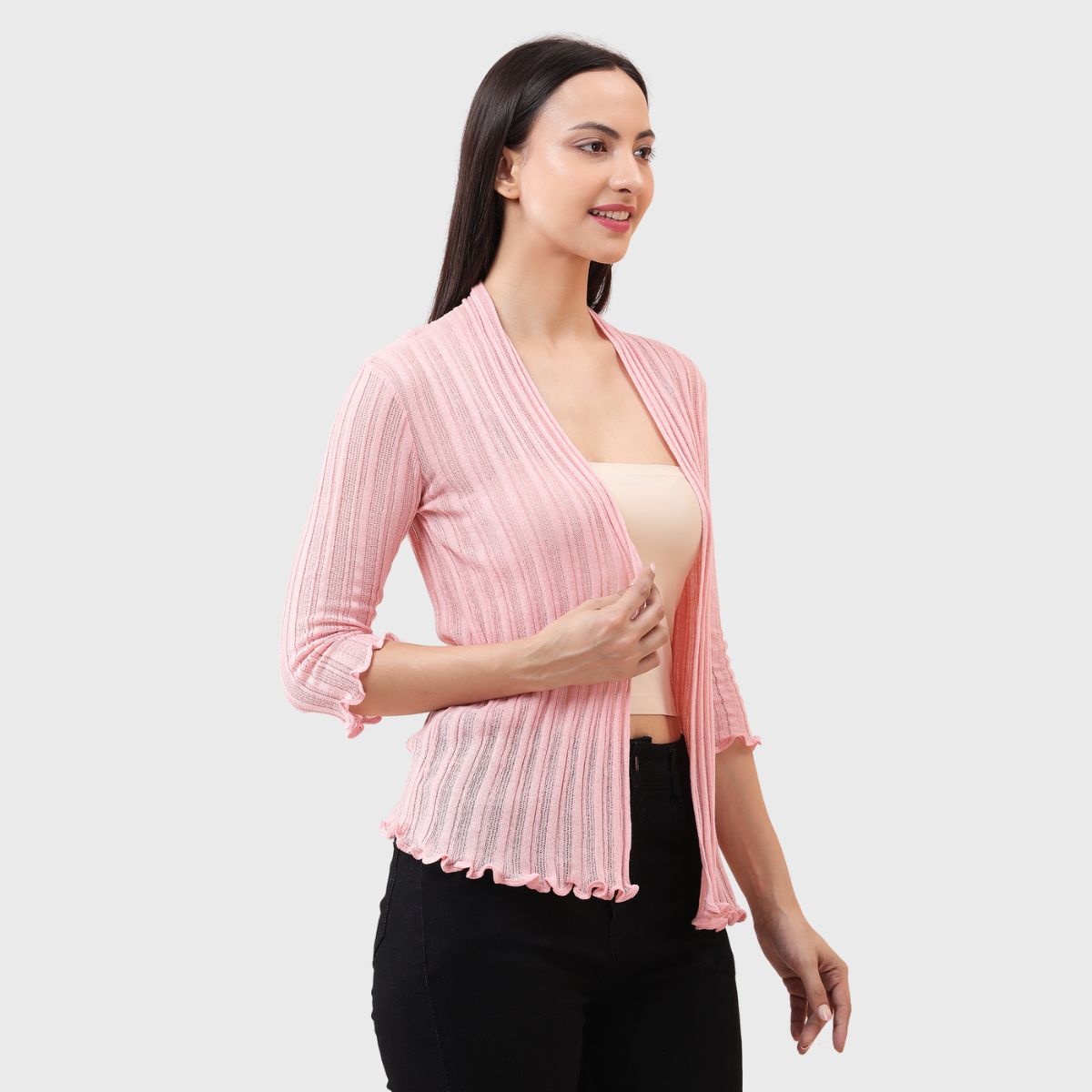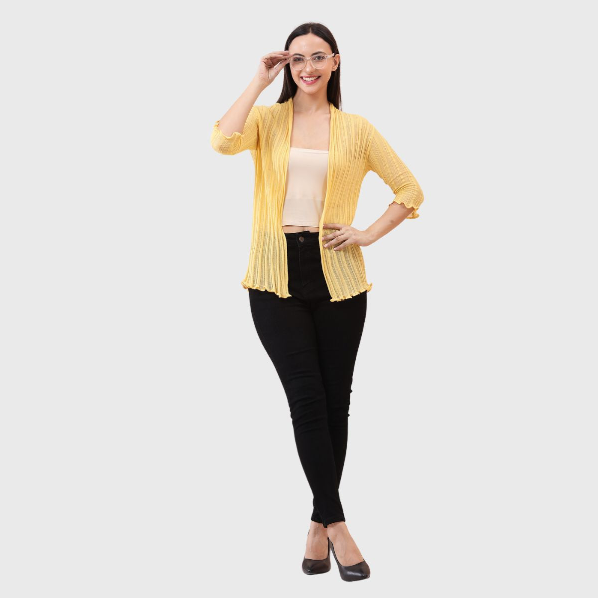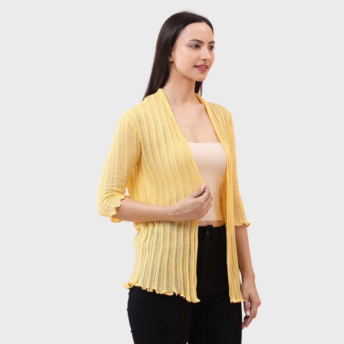 Elevate your layering game with this NOQUO ribbed open-front shrugs. Made from soft, stretchable knit, it features three-quarter sleeves and lettuce-edge hems. The relaxed fit and neutral color make it perfect for pairing with various outfits, whether for work or casual outings. Easy to style and care for, this shrug is a must-have for effortless everyday fashion.