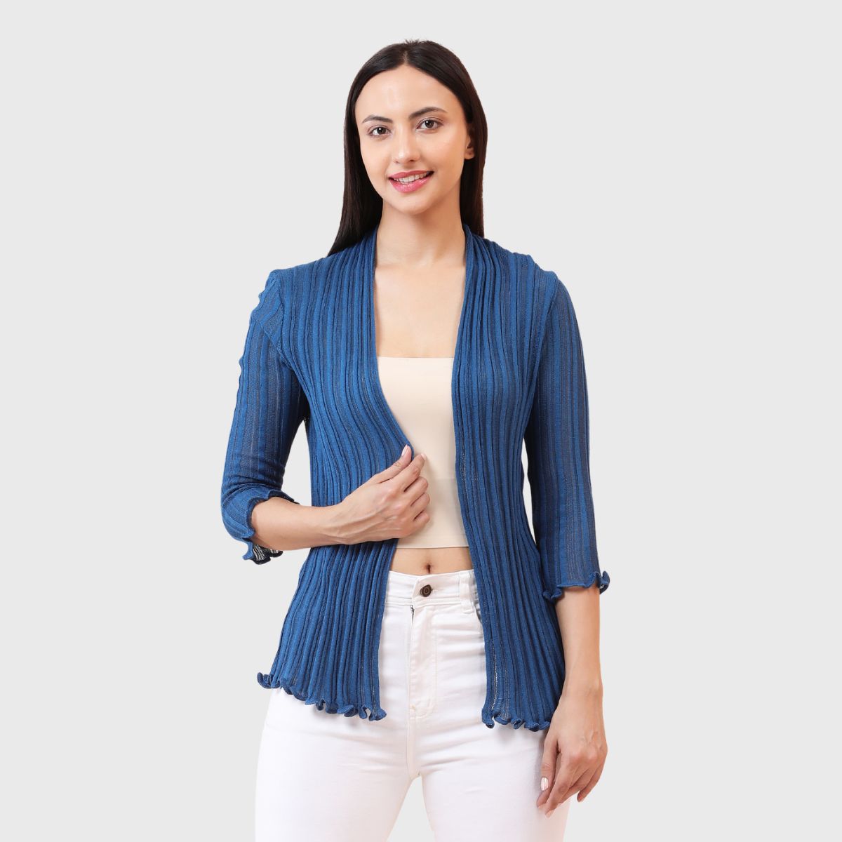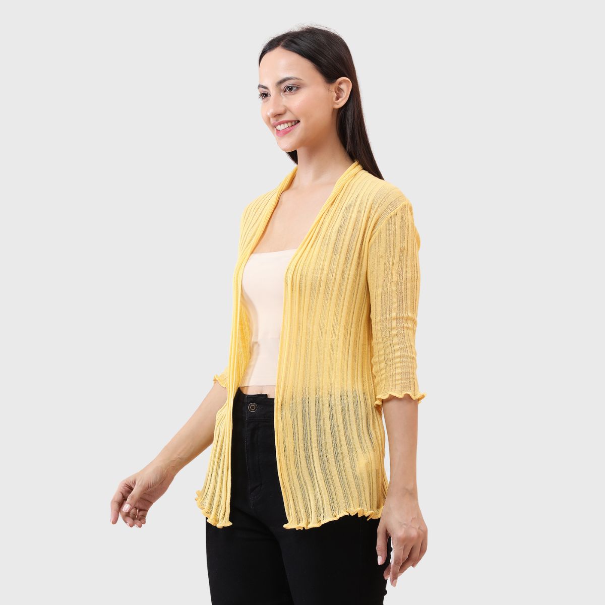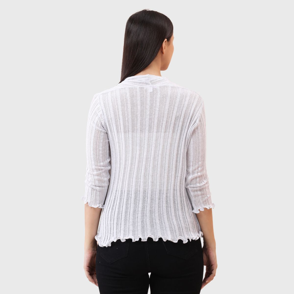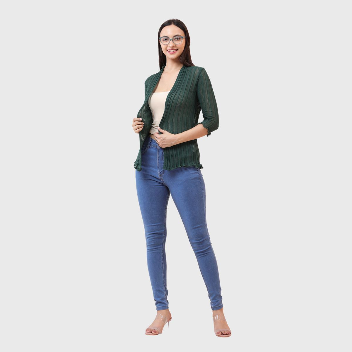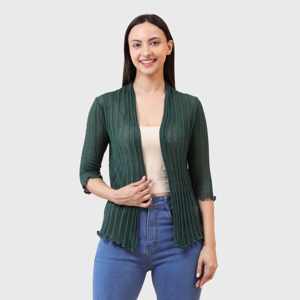 Elevate your layering game with this NOQUO ribbed open-front shrugs. Made from soft, stretchable knit, it features three-quarter sleeves and lettuce-edge hems. The relaxed fit and neutral color make it perfect for pairing with various outfits, whether for work or casual outings. Easy to style and care for, this shrug is a must-have for effortless everyday fashion.