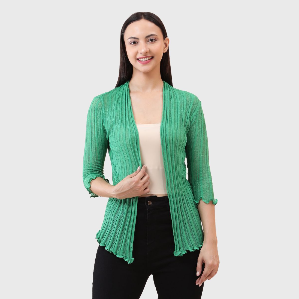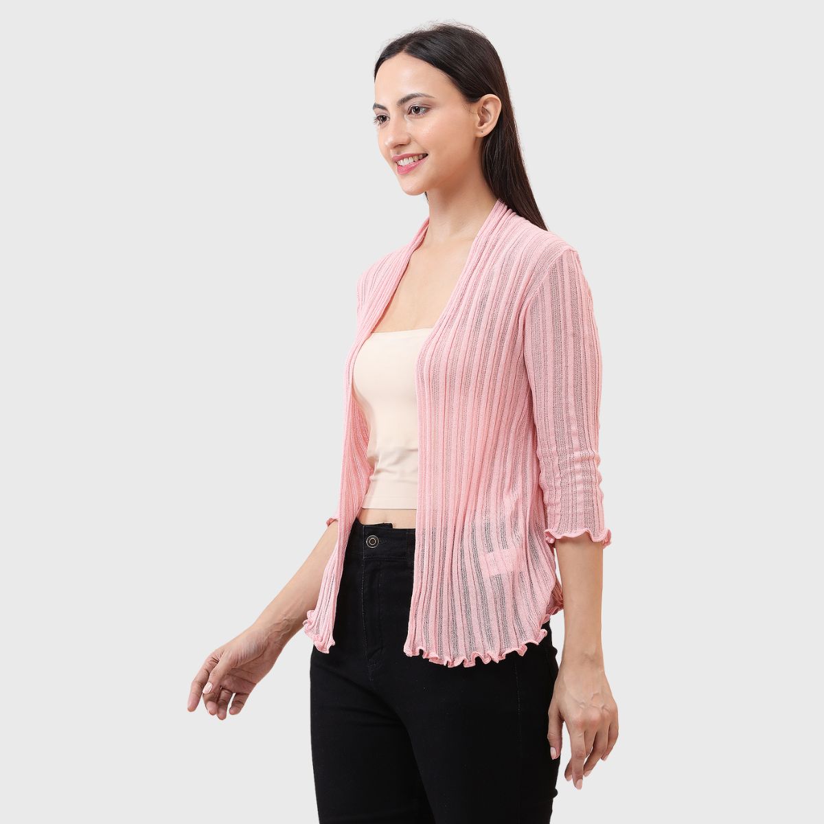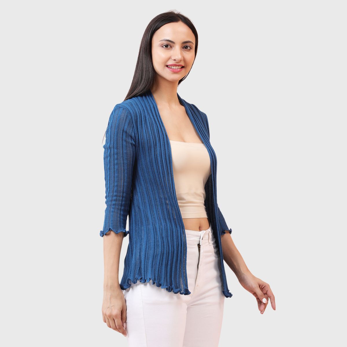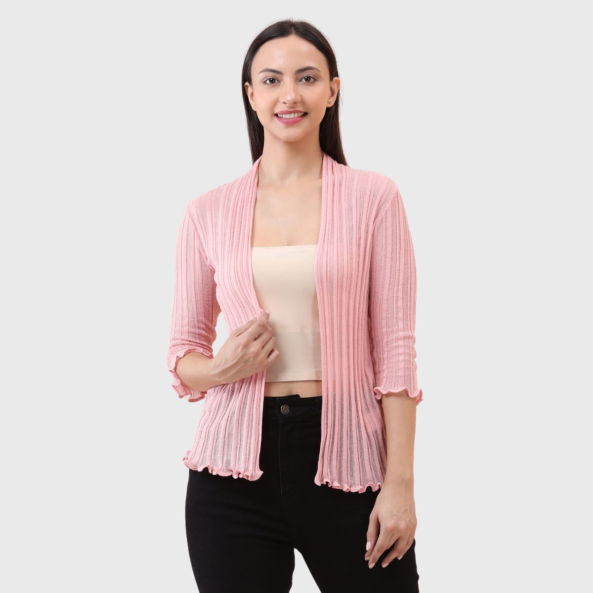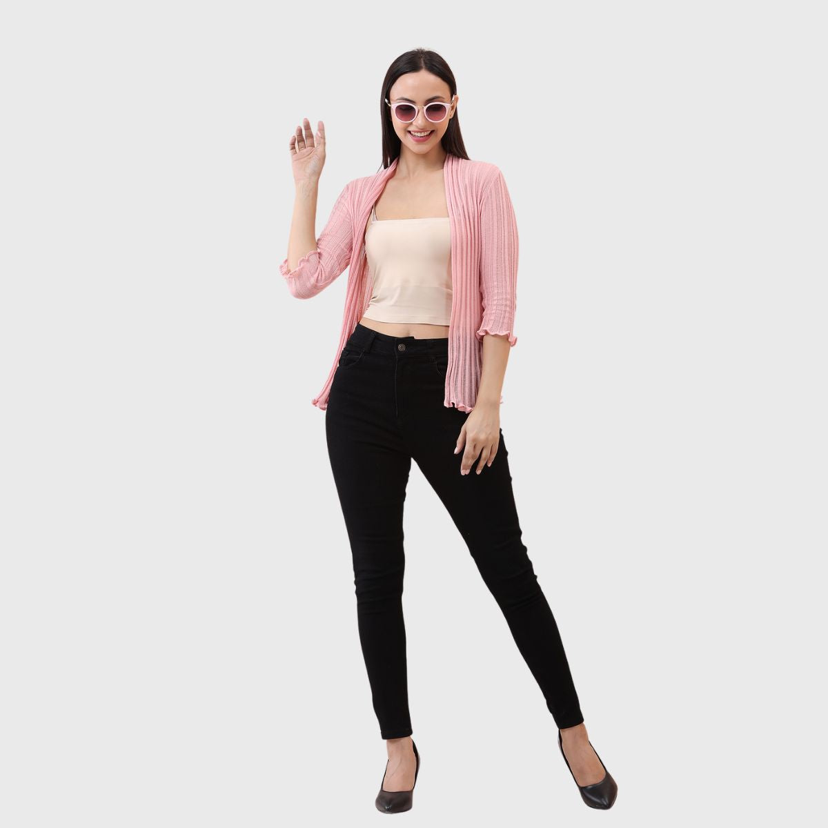 Elevate your layering game with this NOQUO ribbed open-front shrugs. Made from soft, stretchable knit, it features three-quarter sleeves and lettuce-edge hems. The relaxed fit and neutral color make it perfect for pairing with various outfits, whether for work or casual outings. Easy to style and care for, this shrug is a must-have for effortless everyday fashion.