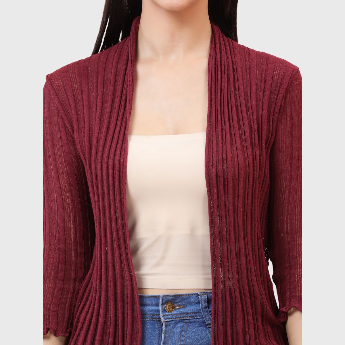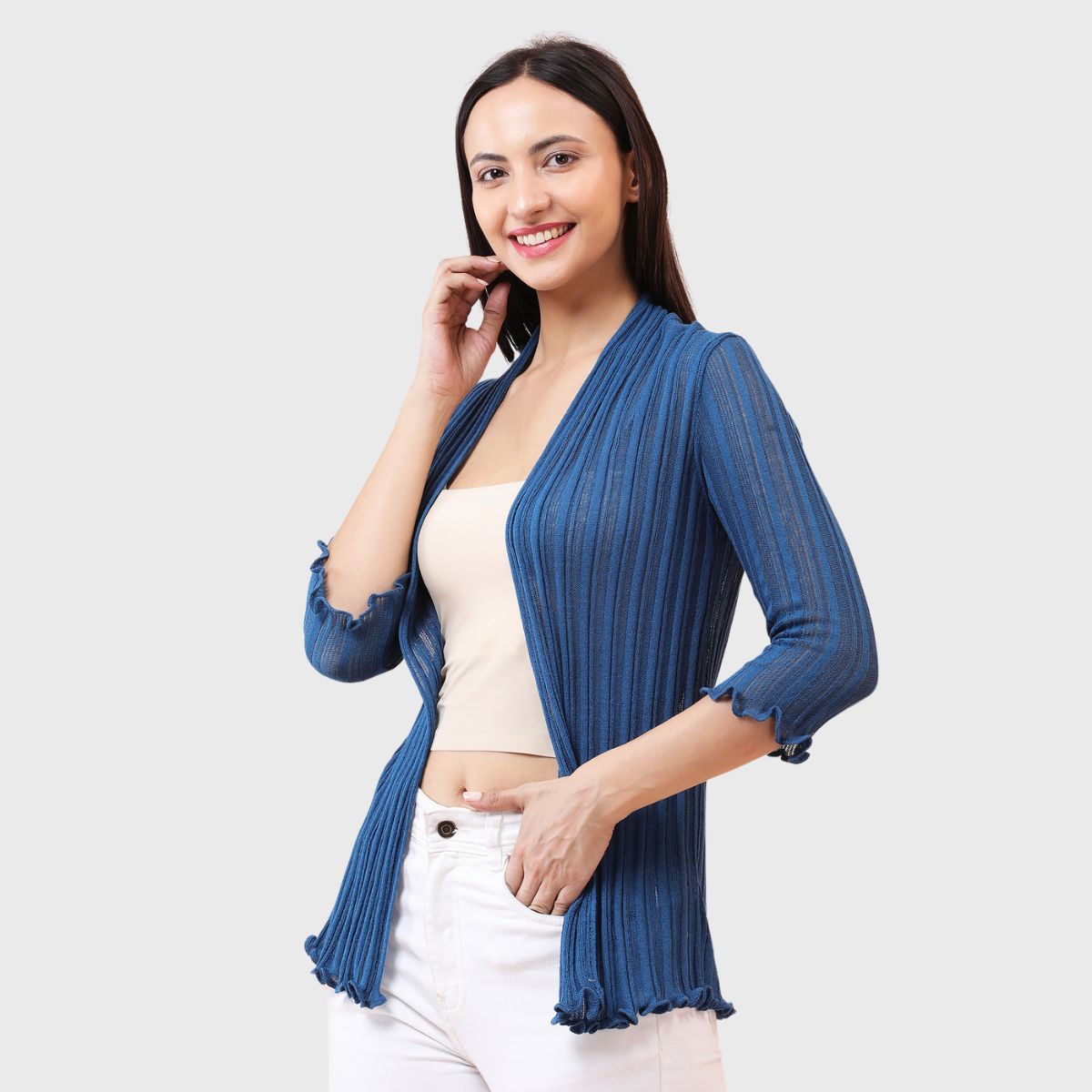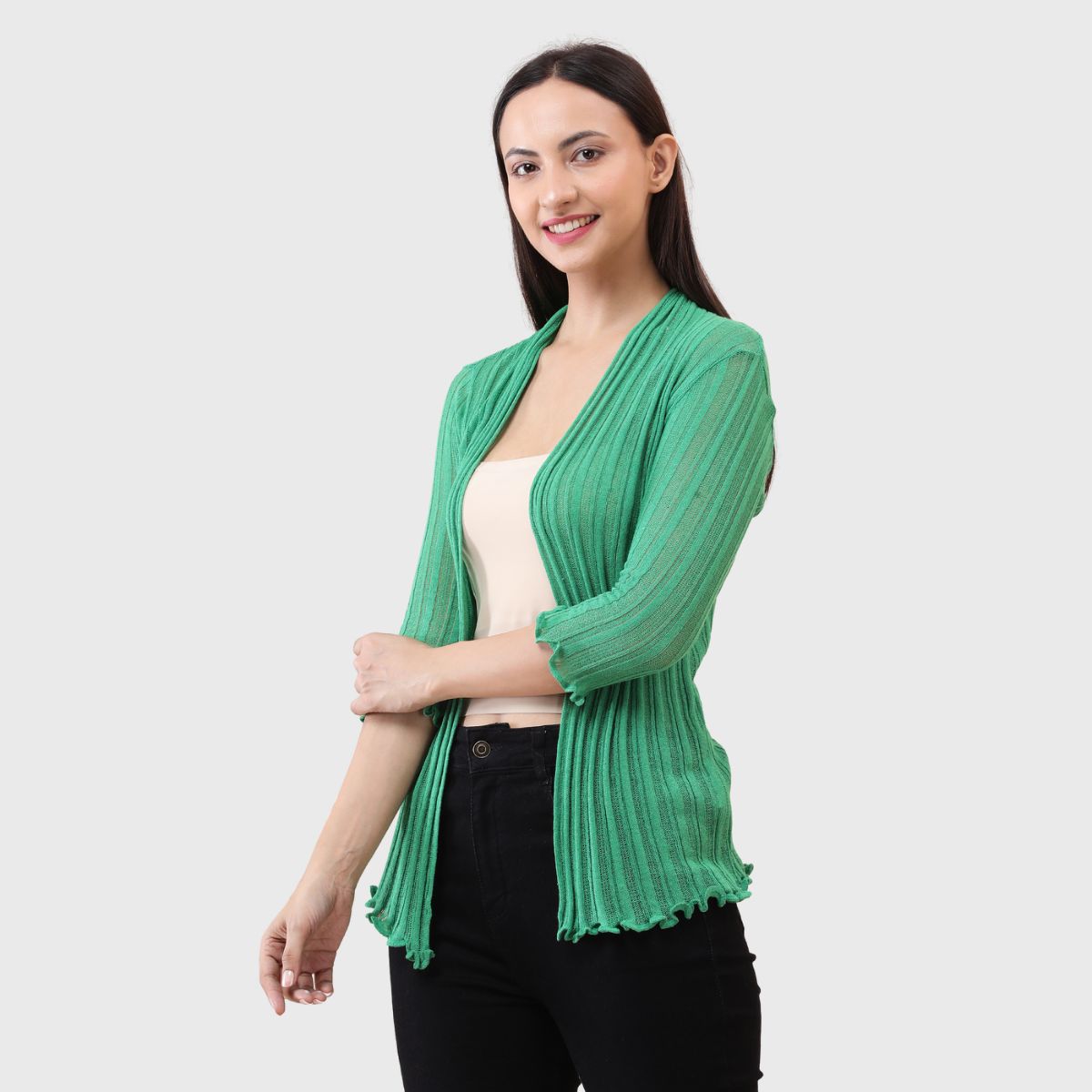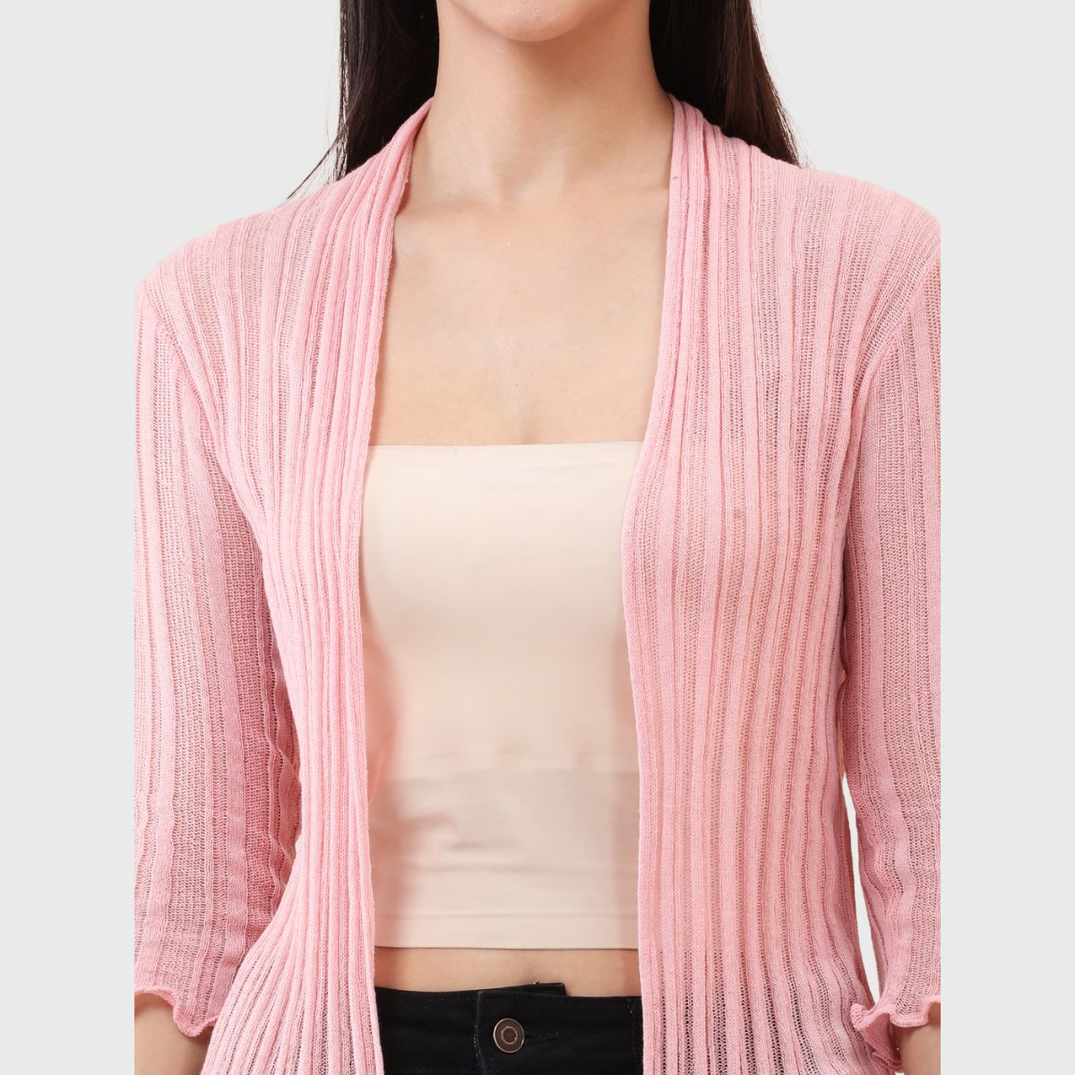 Elevate your layering game with this NOQUO ribbed open-front shrugs. Made from soft, stretchable knit, it features three-quarter sleeves and lettuce-edge hems. The relaxed fit and neutral color make it perfect for pairing with various outfits, whether for work or casual outings. Easy to style and care for, this shrug is a must-have for effortless everyday fashion.