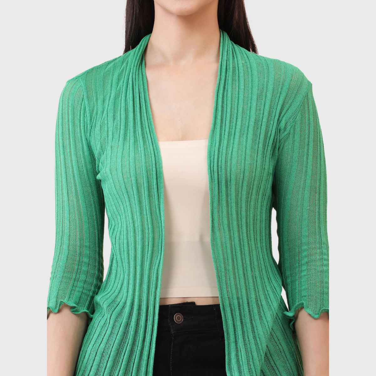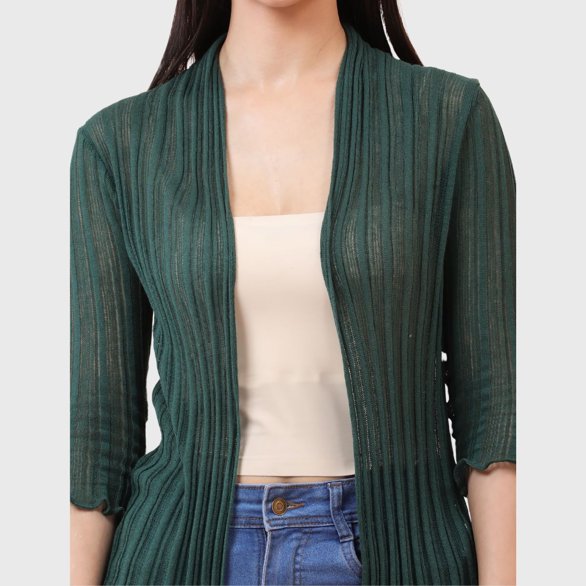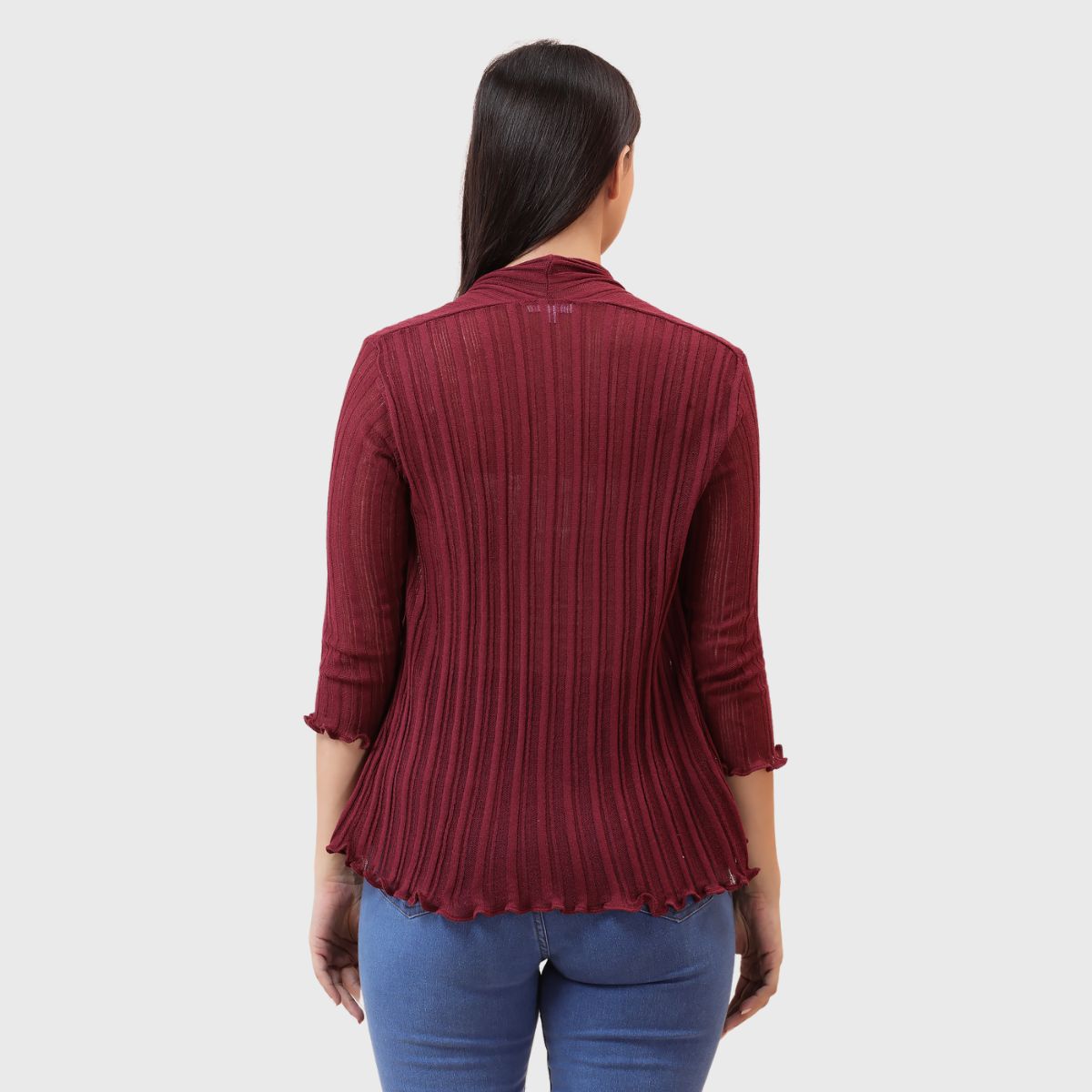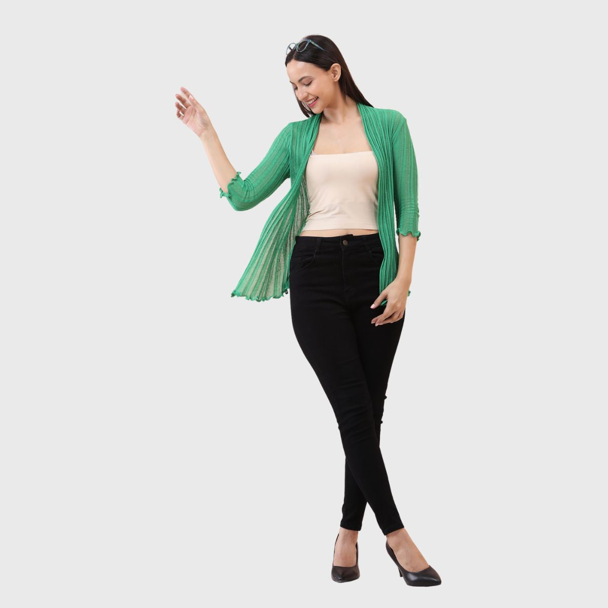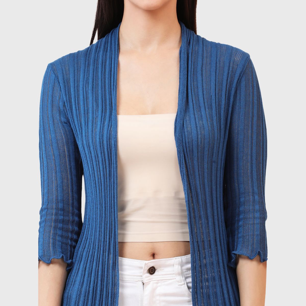 Elevate your layering game with this NOQUO ribbed open-front shrugs. Made from soft, stretchable knit, it features three-quarter sleeves and lettuce-edge hems. The relaxed fit and neutral color make it perfect for pairing with various outfits, whether for work or casual outings. Easy to style and care for, this shrug is a must-have for effortless everyday fashion.