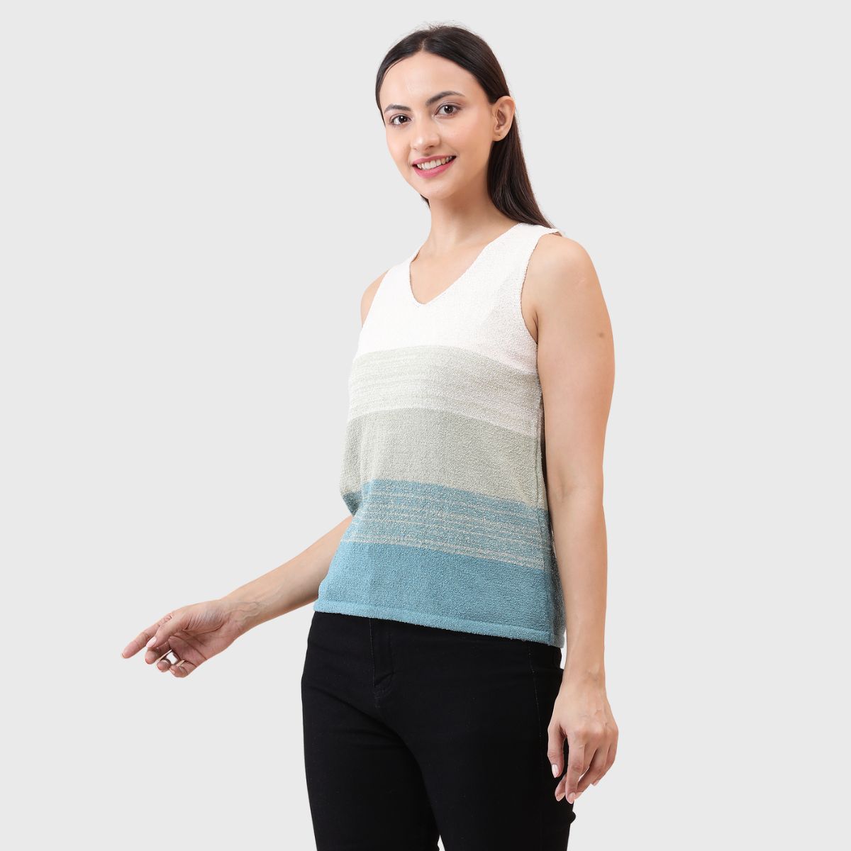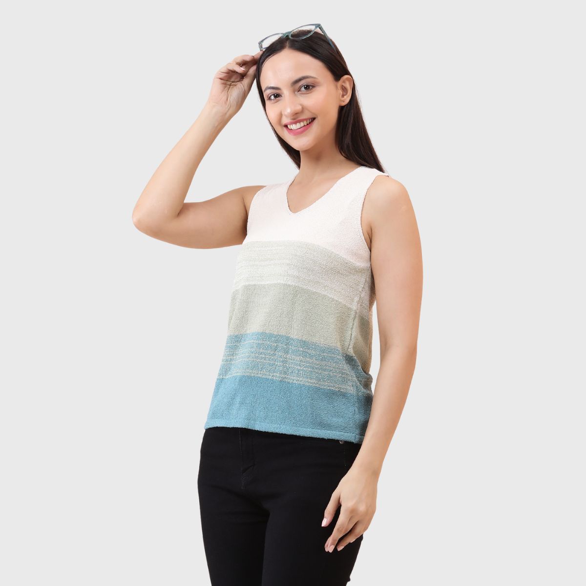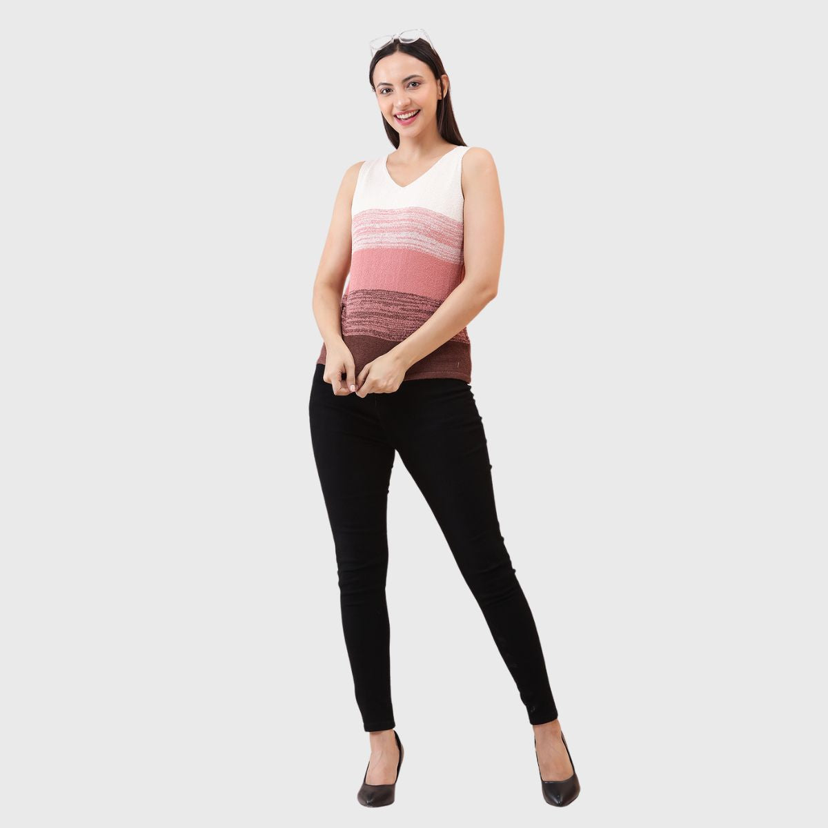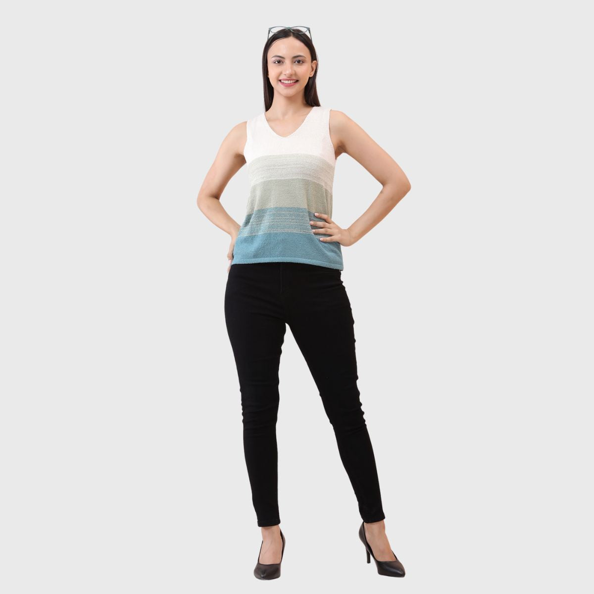 Elevate your everyday wardrobe with this NOQUO women's sleeveless V-neck top. Made from breathable, stretchable knit fabric, it features a trendy striped pattern and relaxed fit. Ideal for travel, office, or casual wear, this lightweight tank top delivers style and comfort in one. Its easy-care fabric and versatile styling make it a timeless staple for modern women.